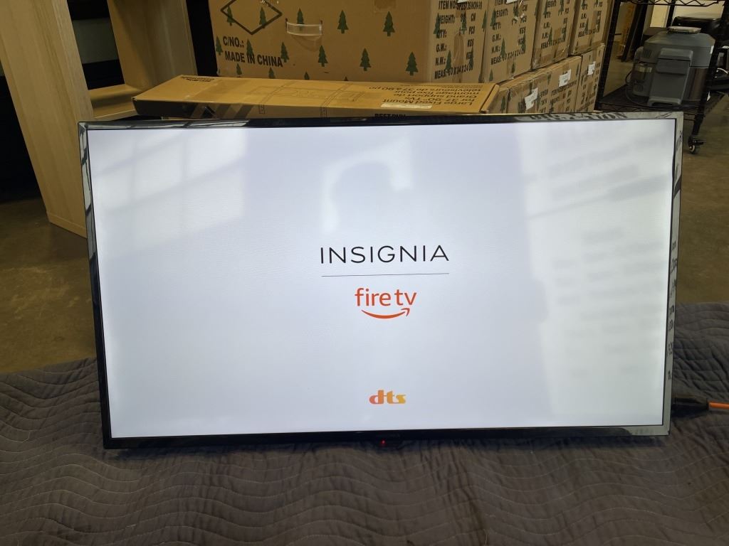 AS NEW 42 INCH 1080P LED INSIGNIA FIRE TV, MODEL NS-42F201CA23 TESTED AND WORKING, WITH REMOTE, NO FEET, INCLUDES WALL MOUNT