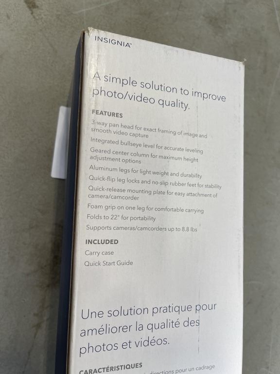 AS NEW INSIGNIA 58 INCH LIGHT WEIGHT TRIPOD
