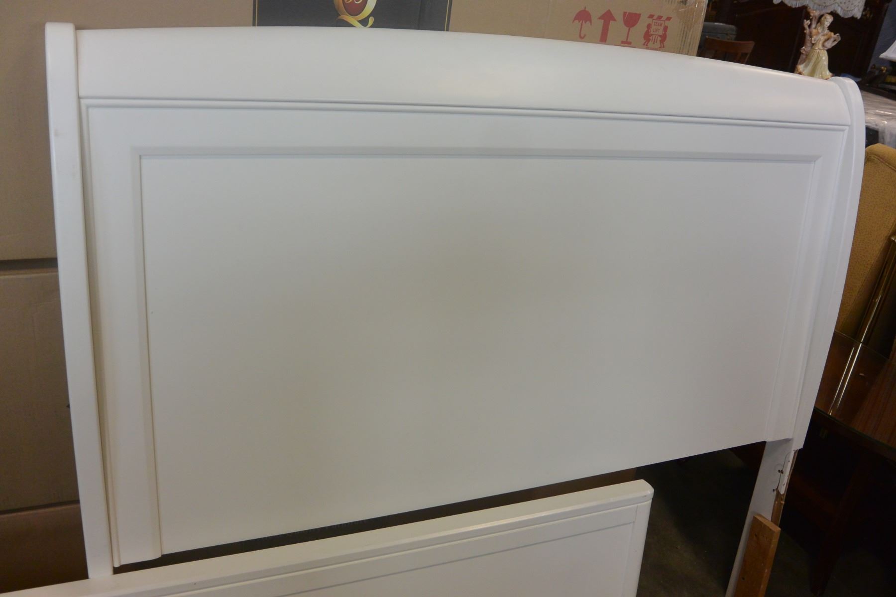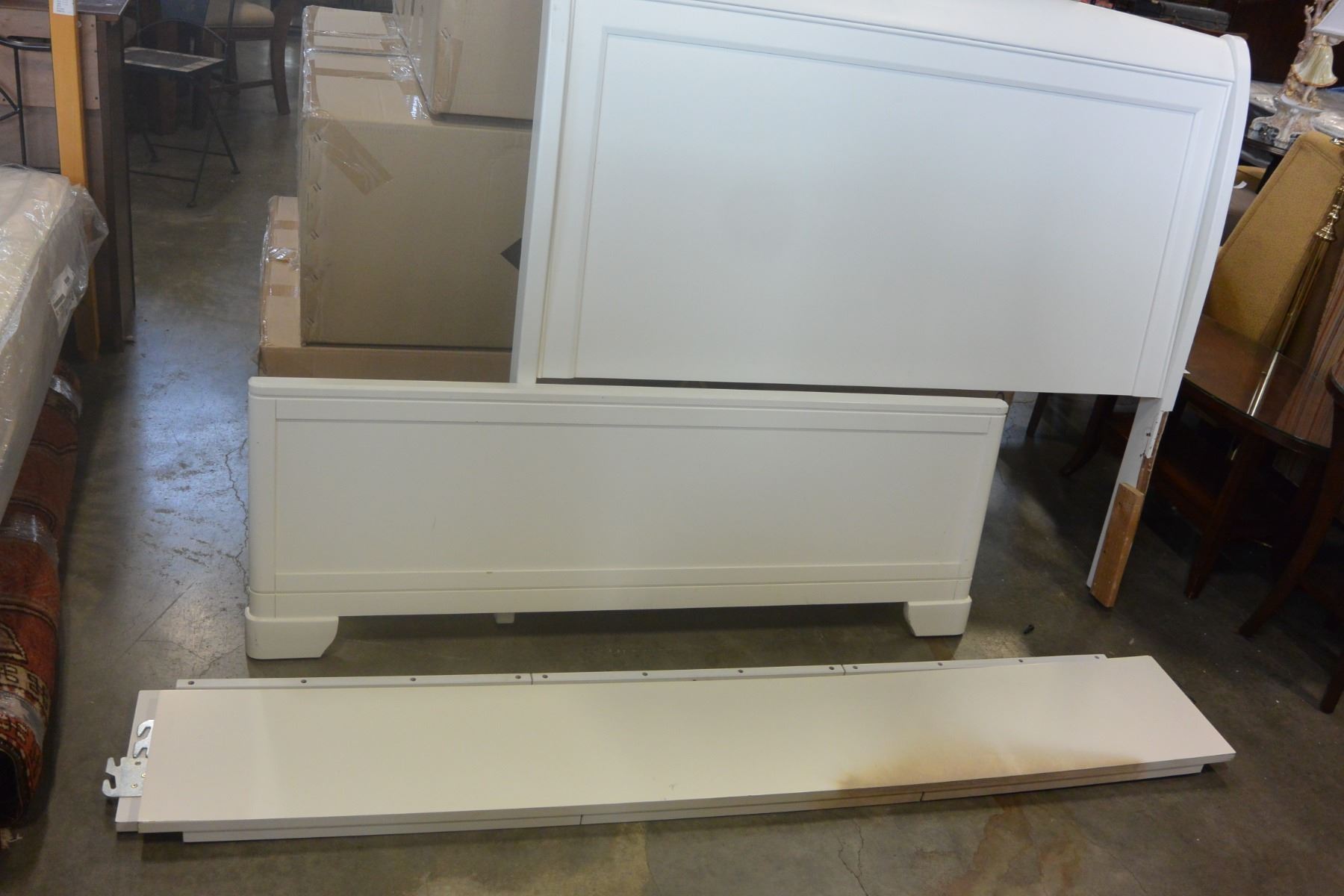 ASHLEY WHITE DOUBLE SIZE BEDFRAME, RAIL REQUIRES REPAIR