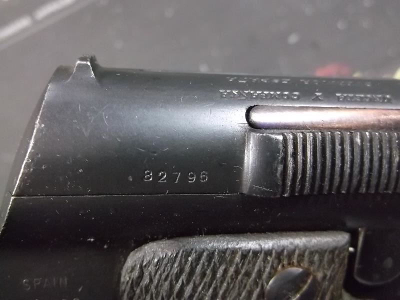 ASTRA 1921 400 9MM LARGO PISTOL, SPAIN, S/N: 82796 (print sequence:) 2 - 1073