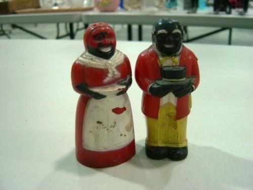 SET OF F&F AUNT JEMIMA AND UNCLE MOSES PLASTIC SALT AND PEPPERS 3 1/2 INCHES TALL, LOT OF PAINT WEAR