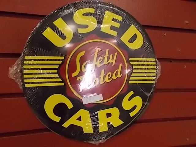 AUTOMOBILIA MEMORABILIA - METAL SIGN - USED CARS - SAFETY TESTED