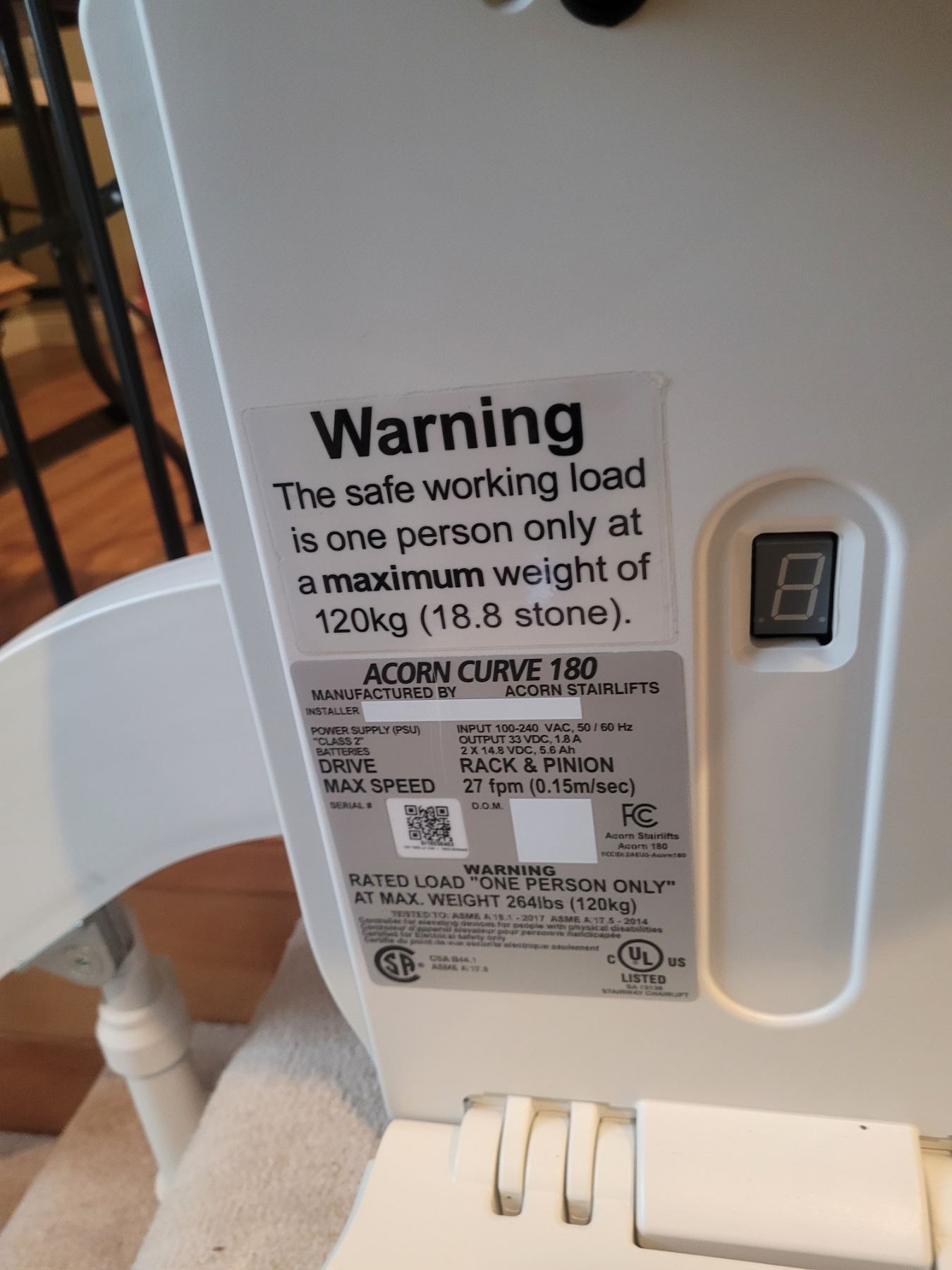 2 Remote controls stair lift. Set up for 14 stairs. Owner will disassemble. Pick up 12 noon.