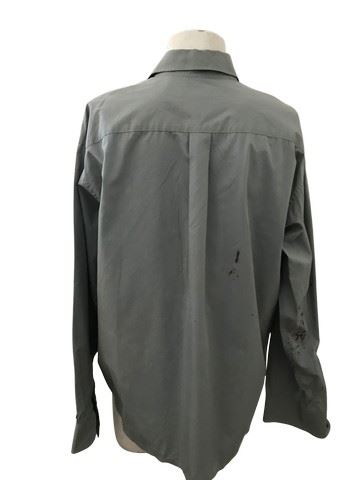 Adaptation (2002)- Donald (Nick Cage) screen worn Banana Republic size XL gray dress shirt with few blood stains on the sleeve and back.