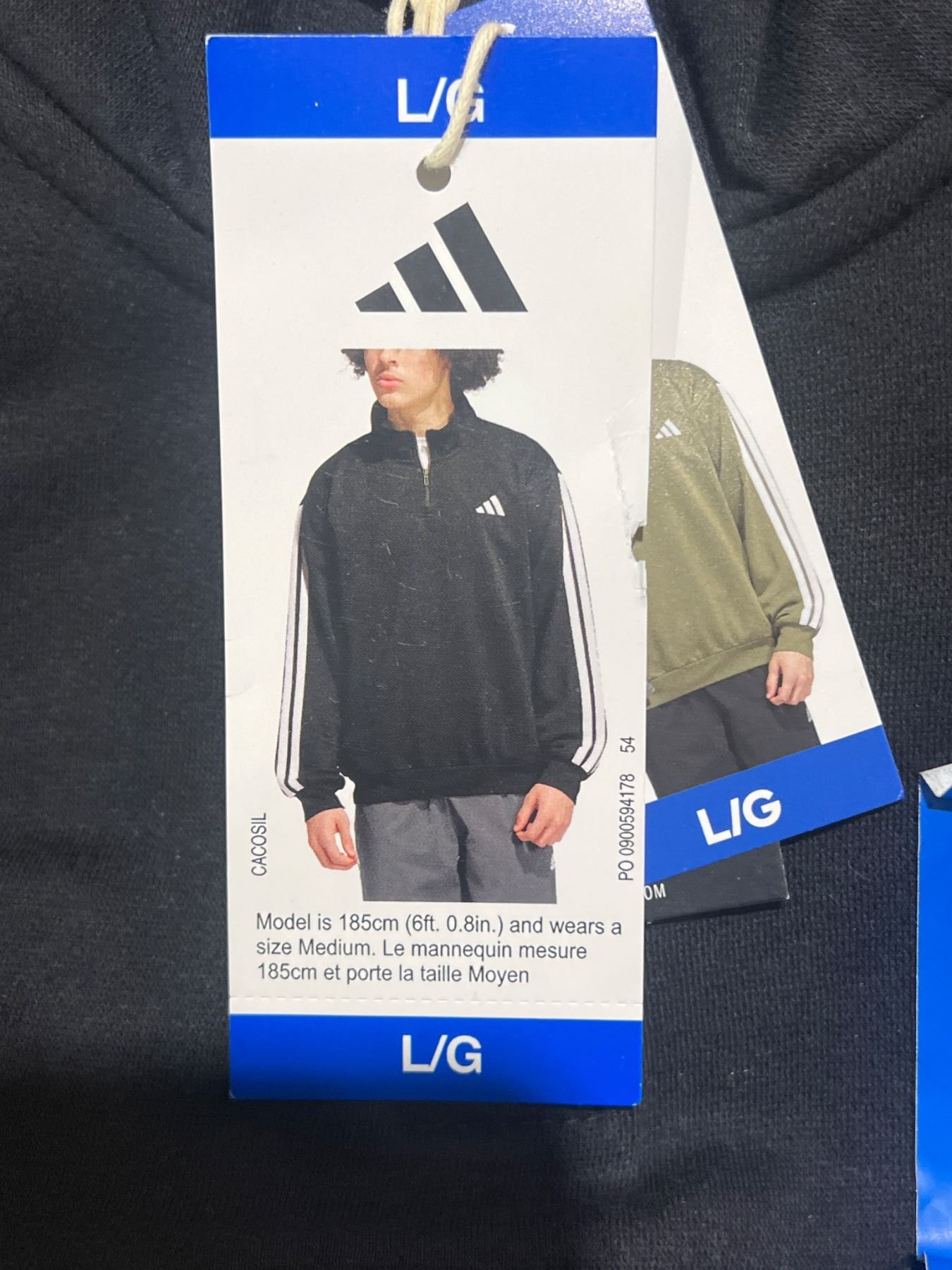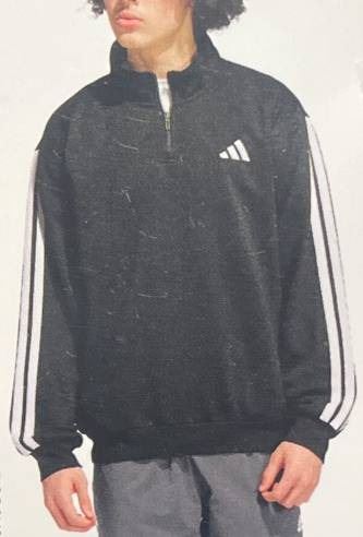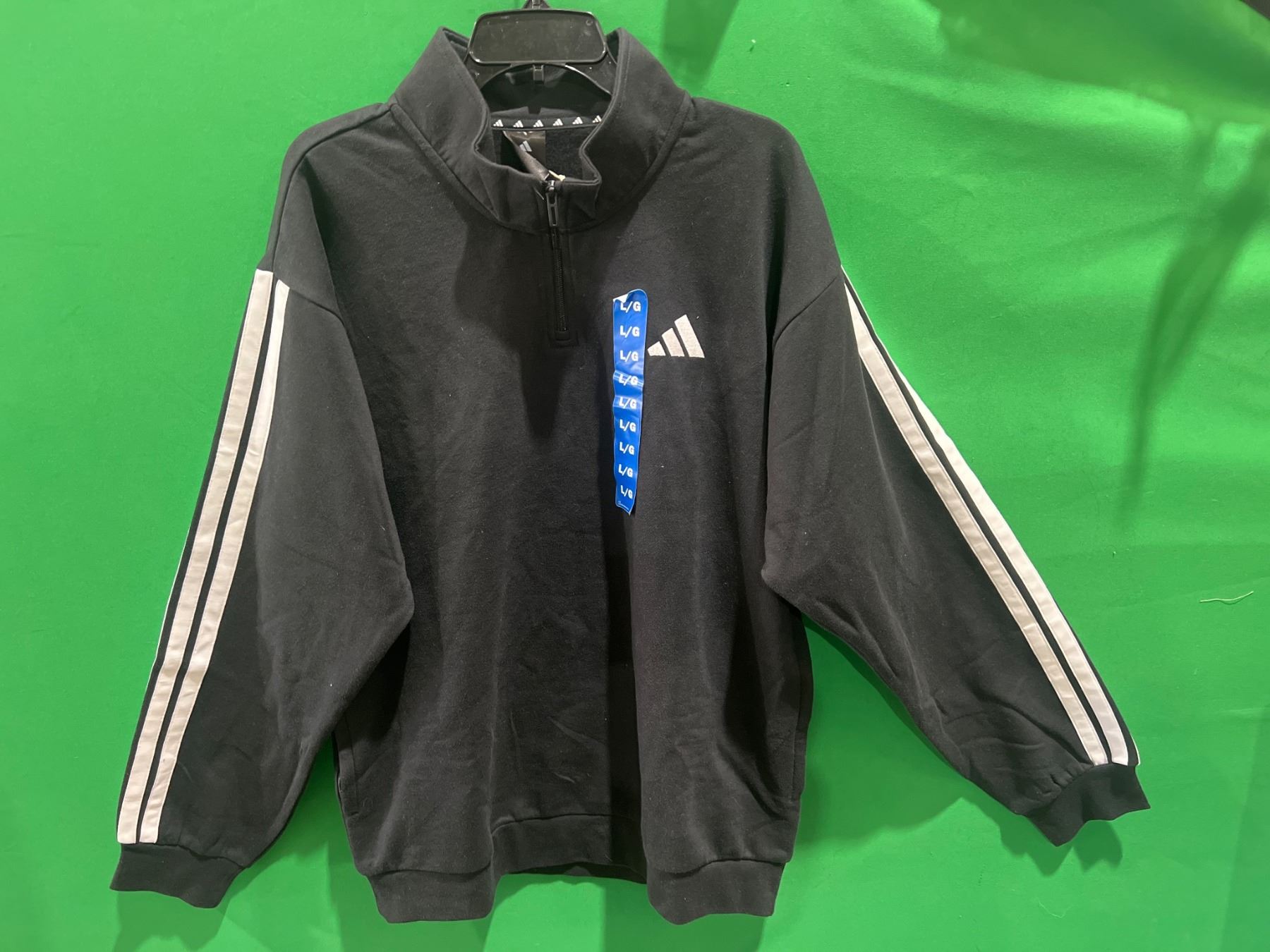 Adidas Black Half-Zip Pullover with White Stripes, Size L/G