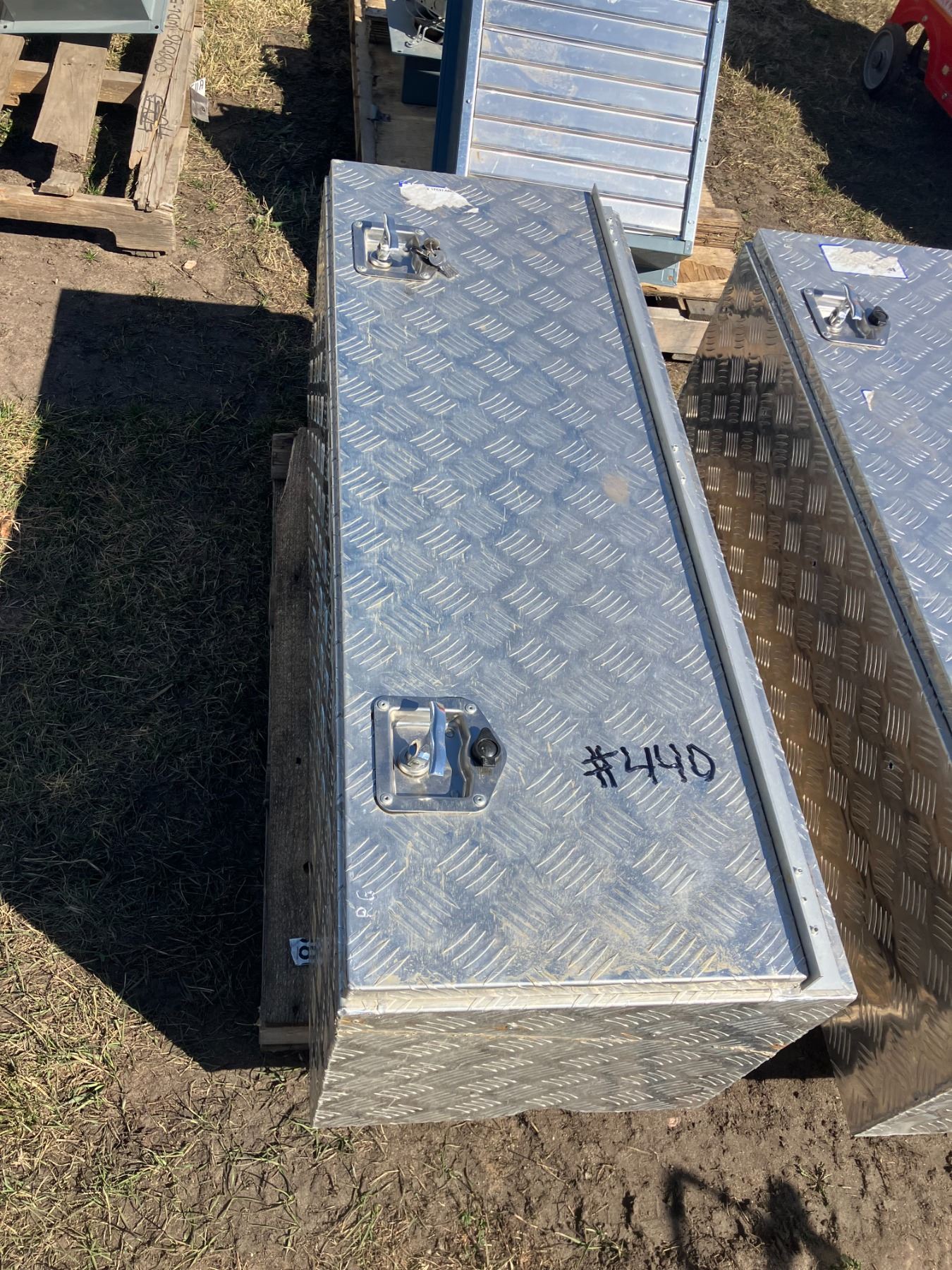 Aluminum storage box. 48" long, 16" high, 16" wide. Has keys.