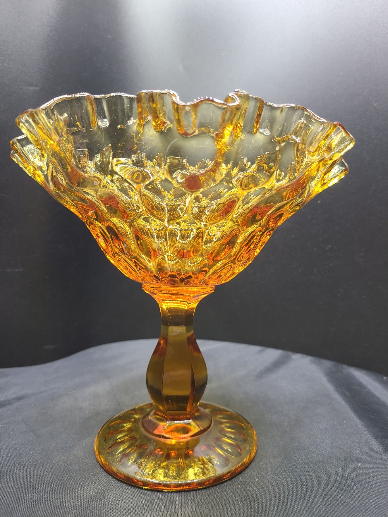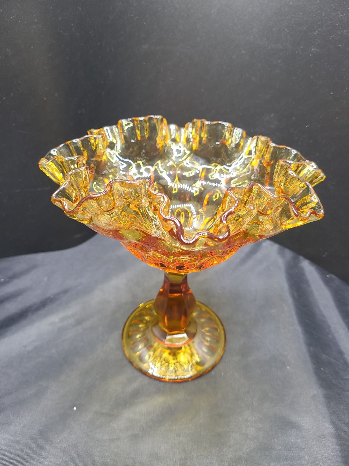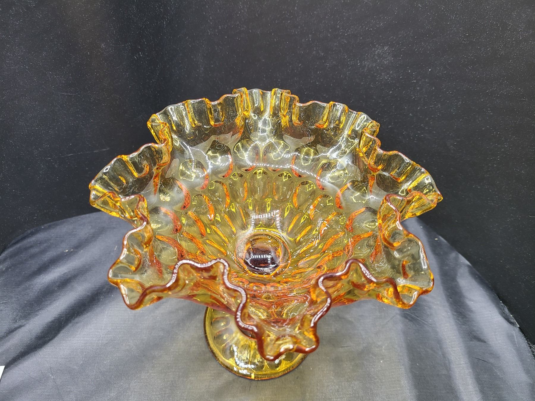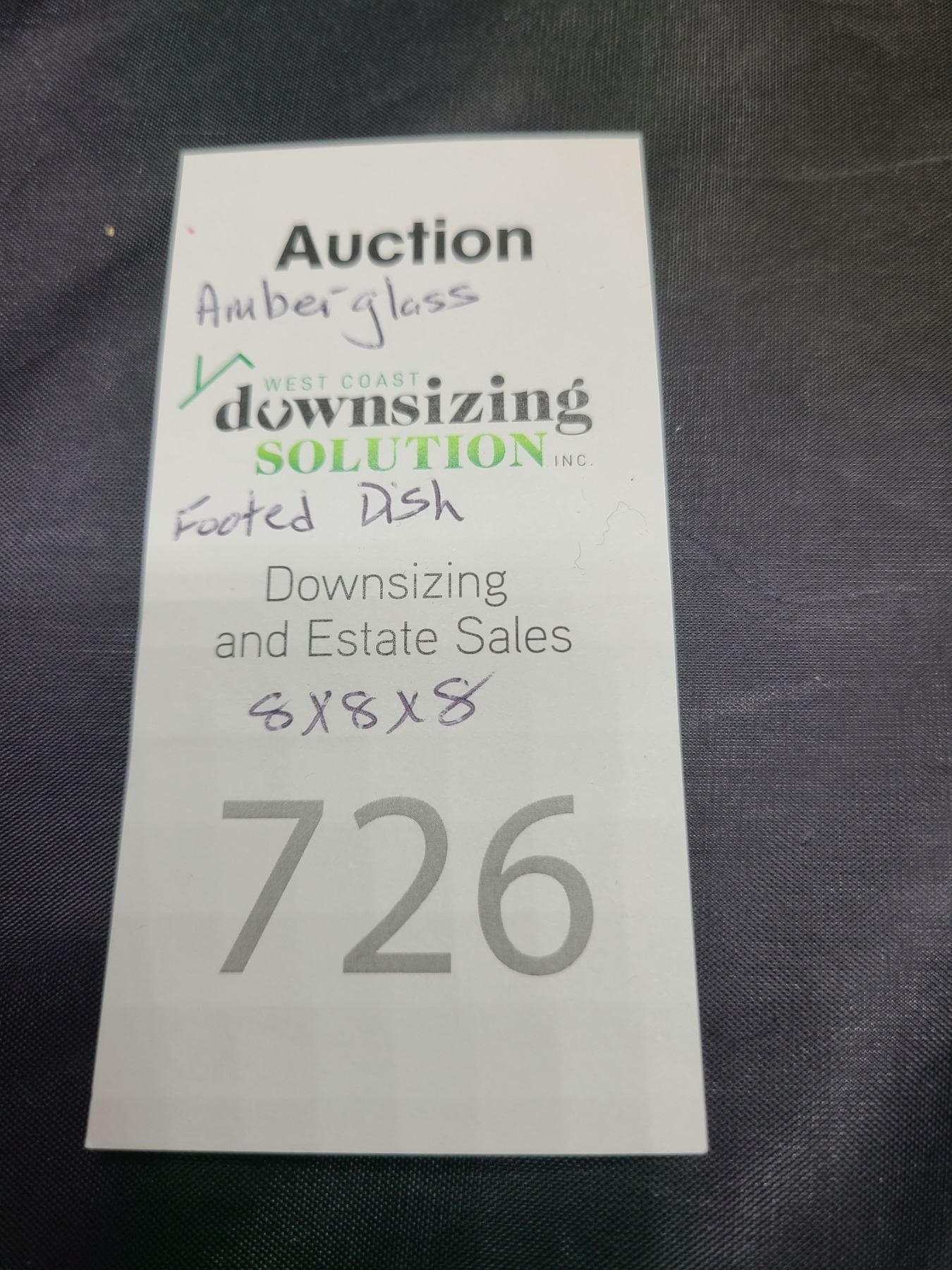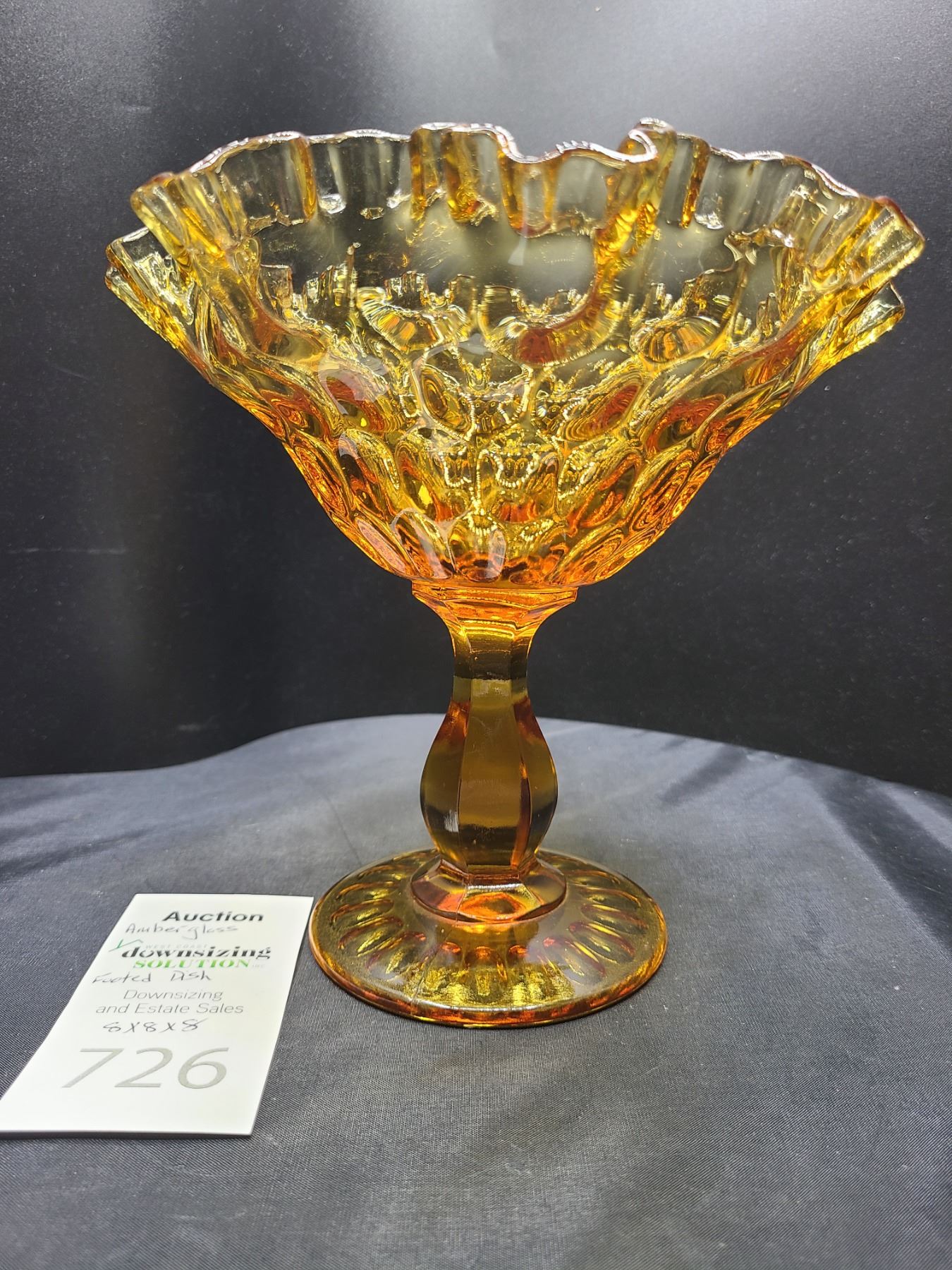 Amber glass footed dish 8x8x8. Pickup at 9 am
