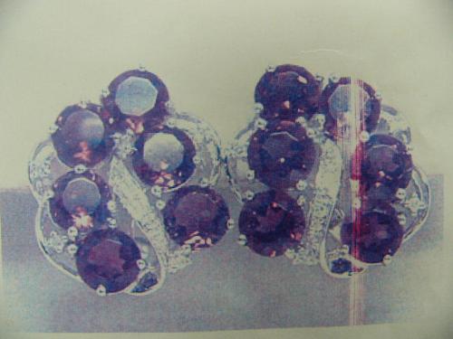 Amethyst and Diamond Earrings, 14 K white gold- Amethyst are round, faceted, approx. 9.00 carats, transparent and purple; diamonds are single cut, approx. 0.12 carats, SI1-SI2 clarity, G-H color- estimated retail replacement cost $1,650 (12)