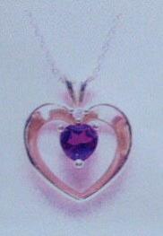 Amethyst and Diamond Heart Pendant and Chain 14 K yellow gold, amethyst is heart-shaped and faceted and approx. 0.25 carats, diamond is single cut and approx. 0.01 carats, estimated replacement cost $115 (12)
