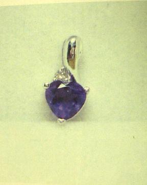 Amethyst and diamond pendant, platinum, amethyst heart shaped, faceted, approx. .50 carats, transparent purple, diamond round cut, approx. .02 carats, clarity I1, color I, estimated retail replacement value $1062.00 (12)