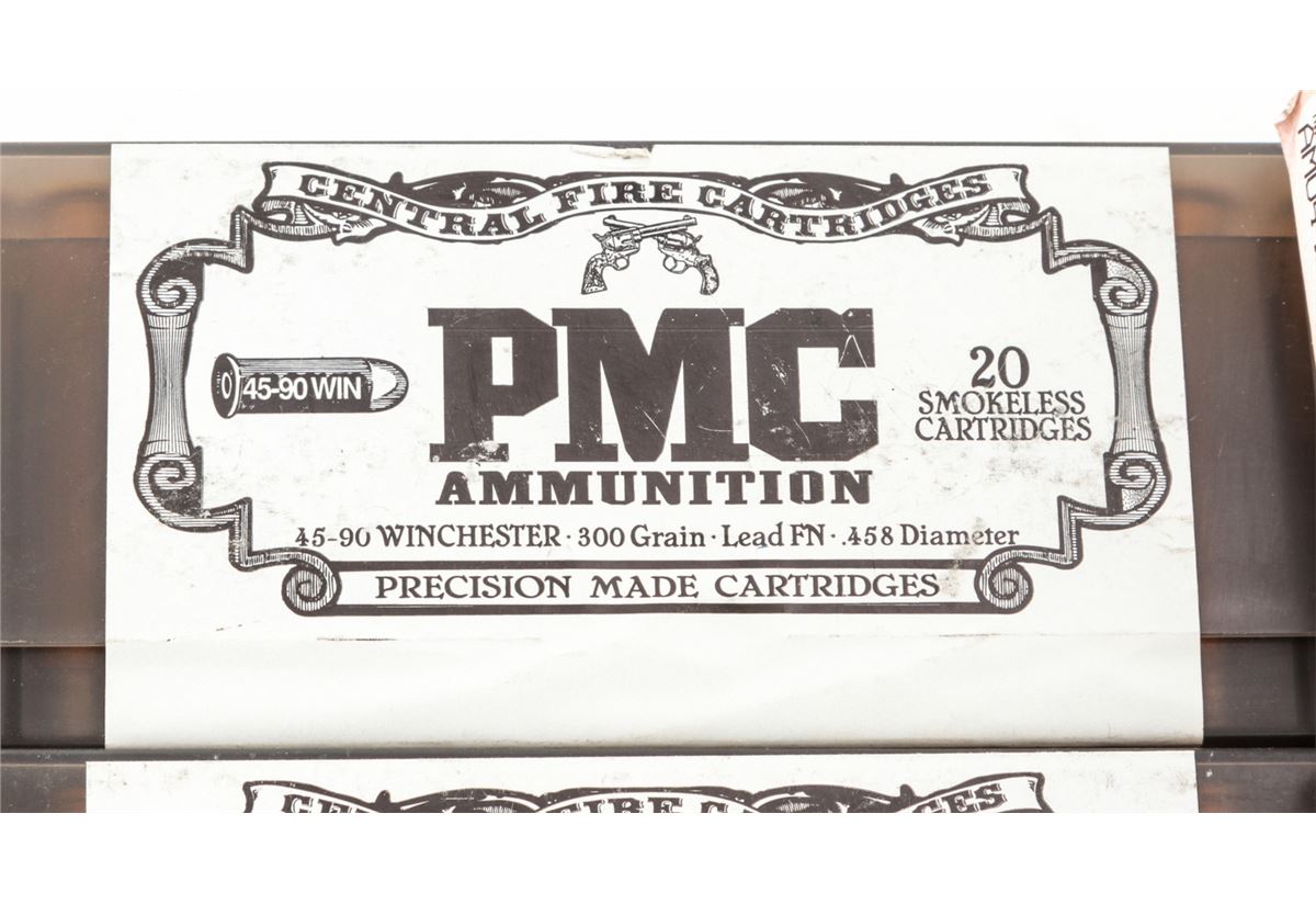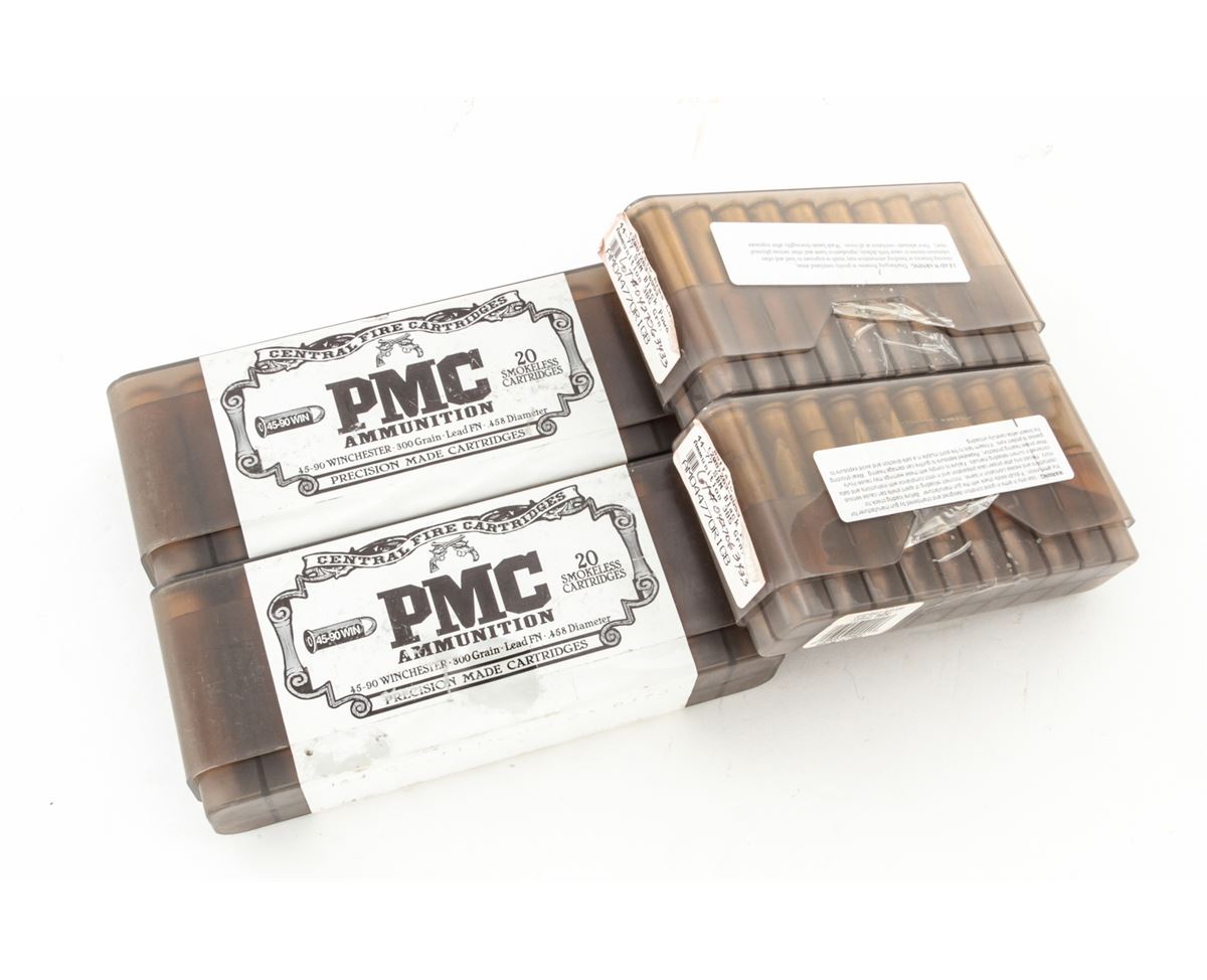 Two (2) 20-Round Boxes of Custom Mfg'd .44 Sharps Ammunition; and two (2) 20-Round Boxes of PMC Special Run .45-90 Ammunition. All appear new and in excellent condition. Est.: $75-$150/lot.