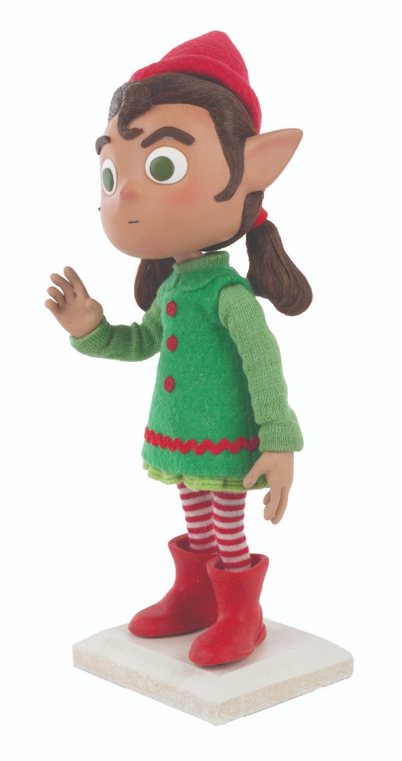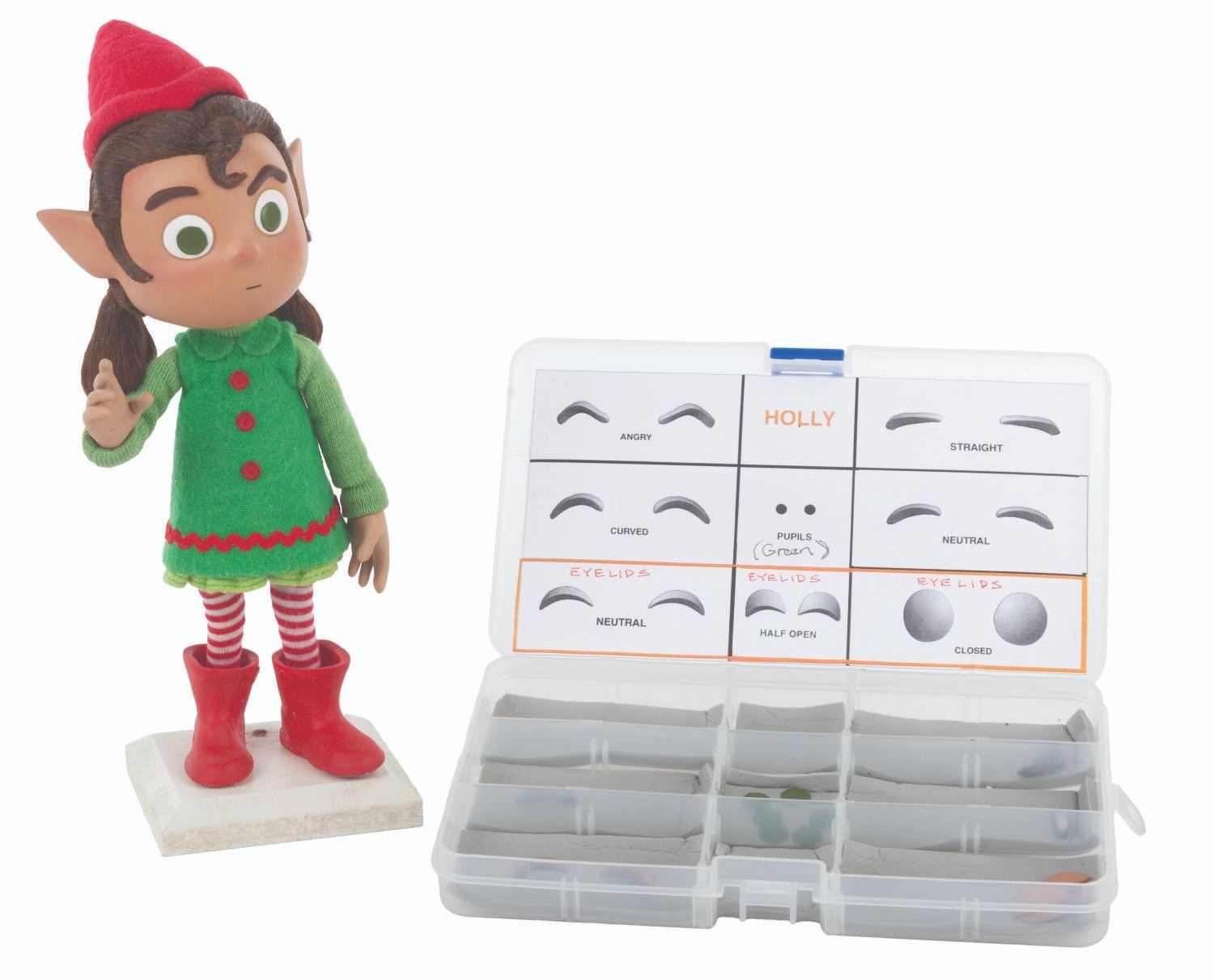 (Netflix, 2020) A stop-motion puppet of the elf child Holly from the holiday special"Alien Xmas." Included with the lot is a production-used eye kit for the puppet. Measuring 3.25" x 2.5" x 8.5" tall and 3.5" x 2.75" x 9" including its base, the puppet is in very good condition, with light wear from production use and scratches on the base.