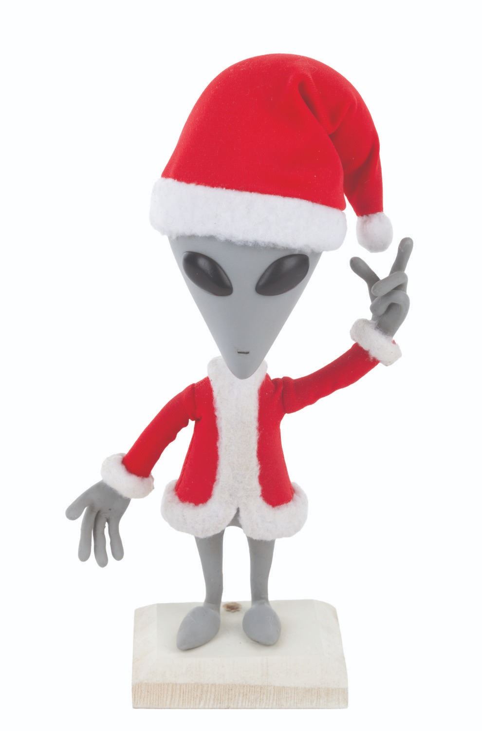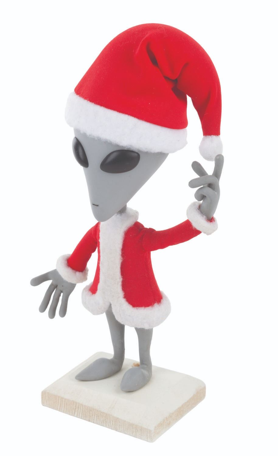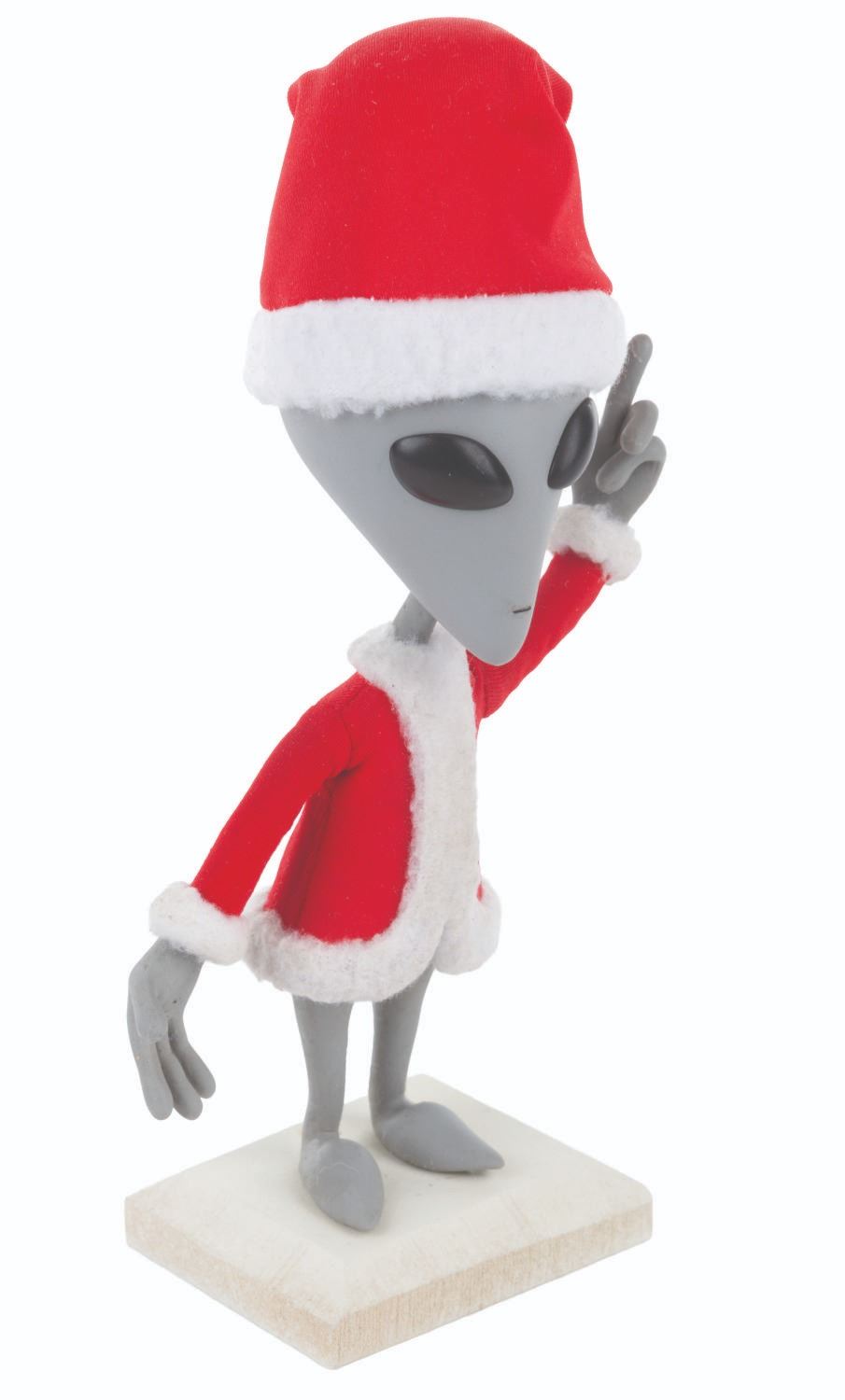 (Netflix, 2020) An original stop-motion puppet of X in a Santa Claus outfit from"Alien Xmas." Measuring 3.5" x 2" x 7" tall, and 7.25" tall including its base, the puppet is in very good condition with light wear from production use.