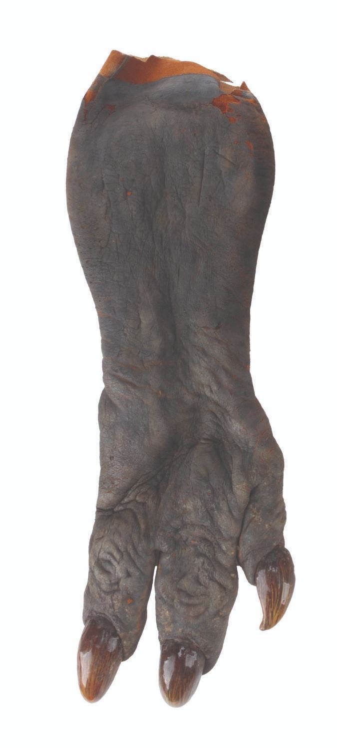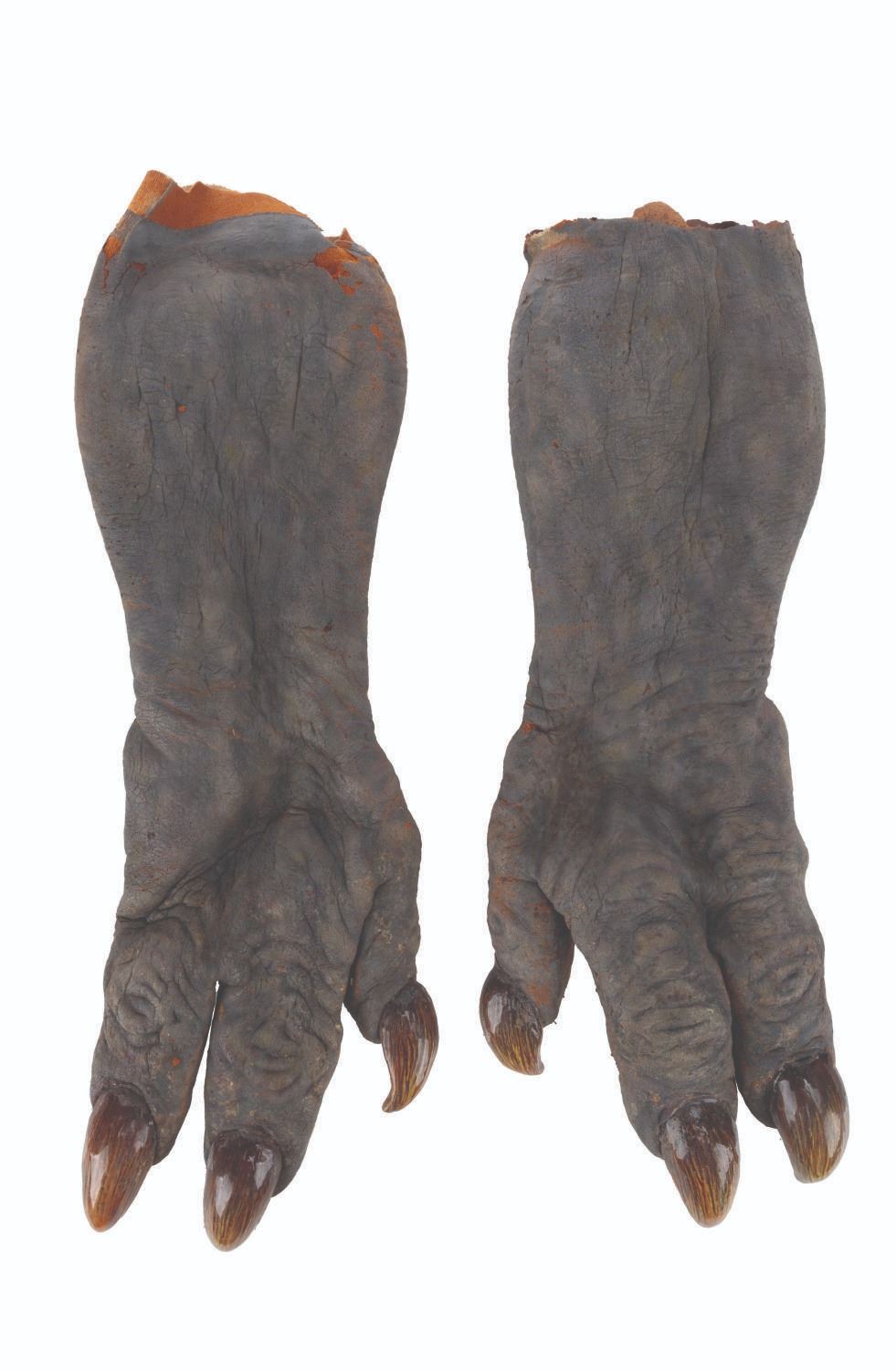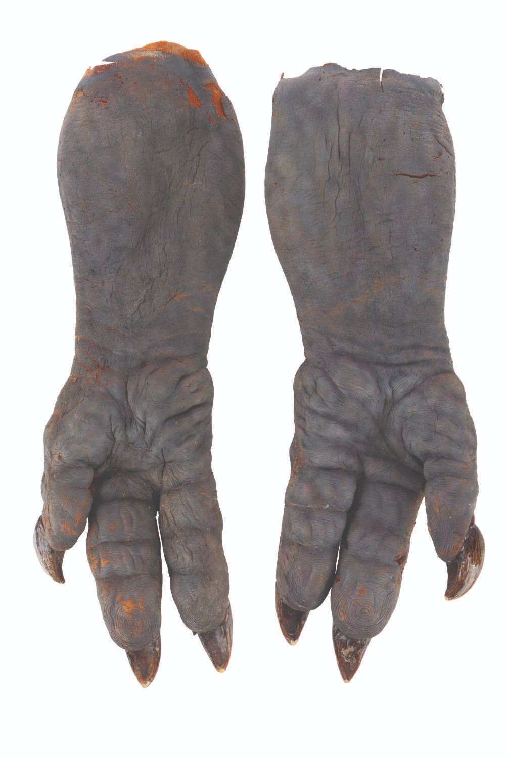 (CBS, 1992) A screen-used ghoul mask and hands from the Howie Mandel-starring television series"The Amazing Live Sea Monkeys." The hand-painted foam mask and hands were worn in the episode "Haunted Lighthouse," where the Sea Monkeys face off against villains wearing ghoul masks. The mask measures 10" x 14" x 20", and each hand measures 3" x 5" x 15". The items are in fair condition, with moderate foam loss, heavy deterioration, paint loss, soiling, and discoloration.