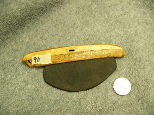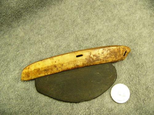 Ancient St. Lawrence Island Ulu slate and ivory handled 5.5" possibly 500 years old (2)
