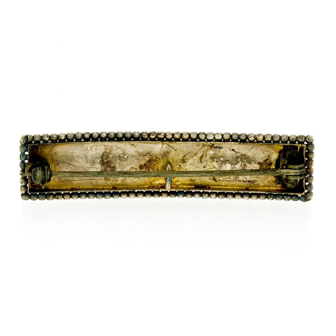 Antique 14K Gold Hand-Engraved Bird & Floral Work Beaded Frame Bar Pin Brooch