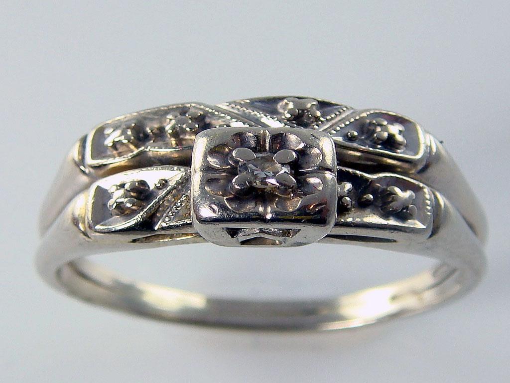 Antique 1920s Diamond Engagement & Wedding Set - 14kt White Gold 5.4 Grams Retail Value $1675 - -