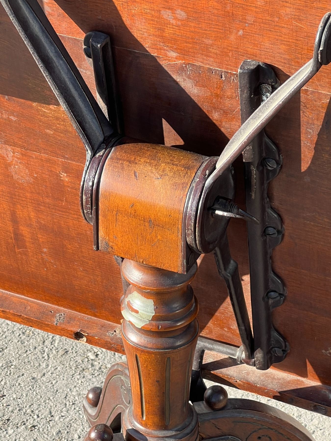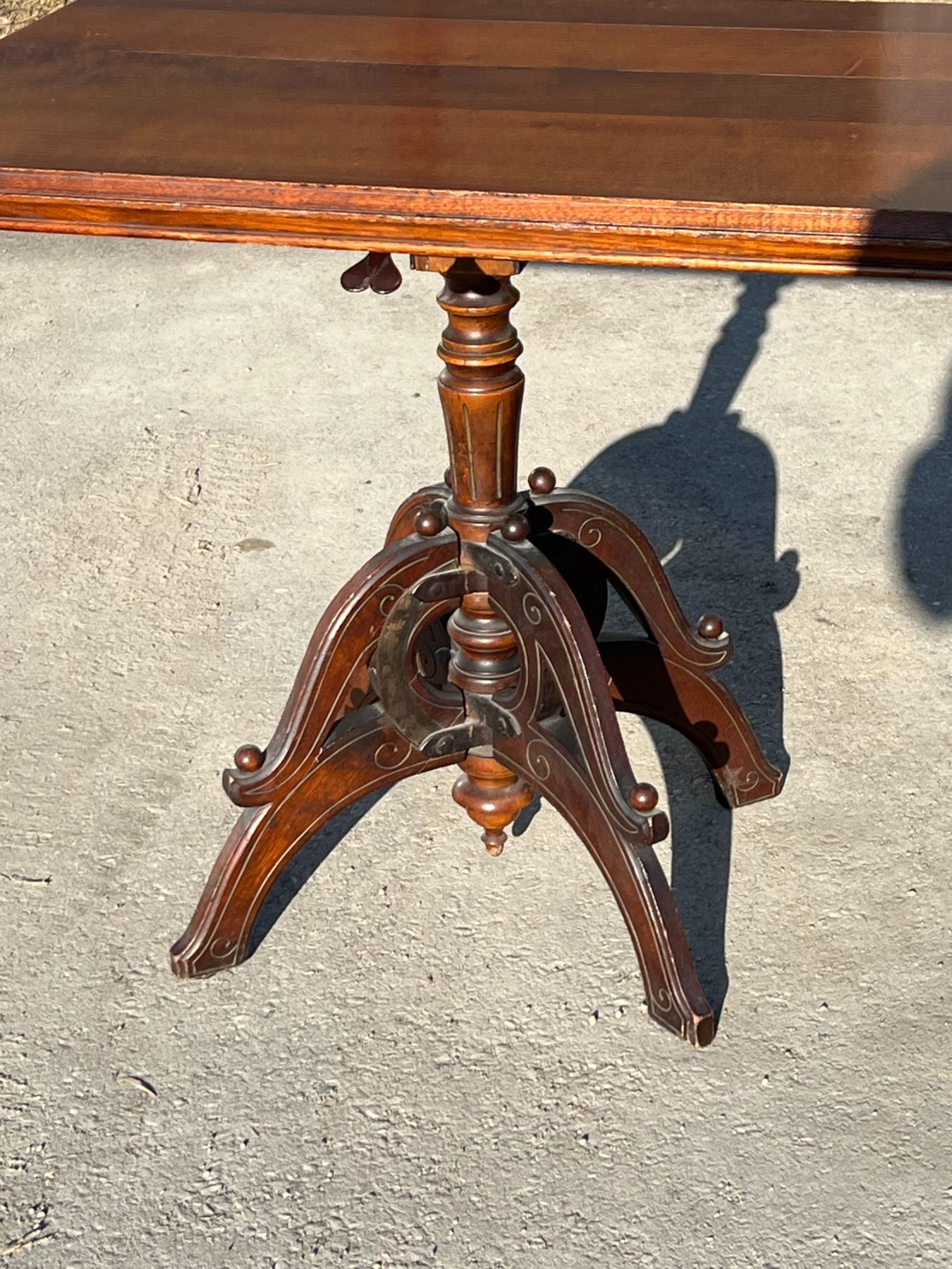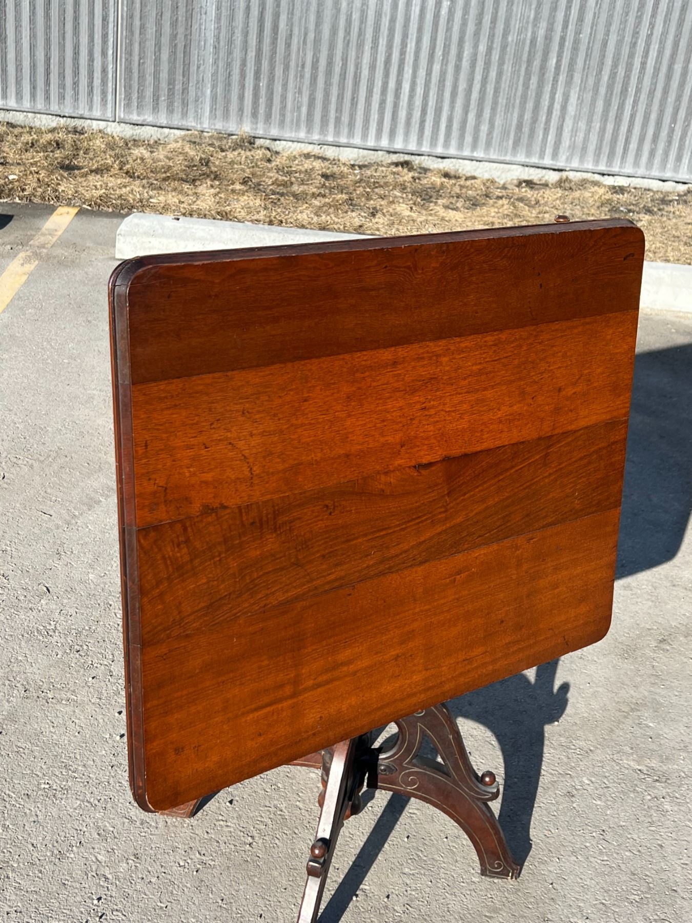 Antique Adjustable Wooden Folding Drafting Table With Drawer and Cast Iron Mechanism - Quite an amazing piece. Adjustments and functions worked well. Use as a drafting Table or an amazing Accent Table in almost any room. Looks like a quality build in great condition. Unknown maker. Please view all photos. table top approx: 32.75x26"