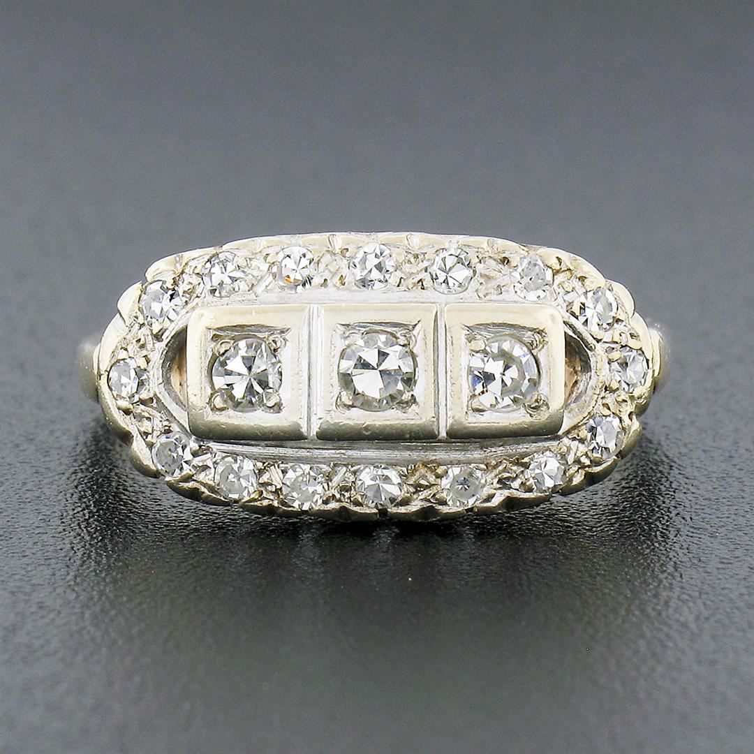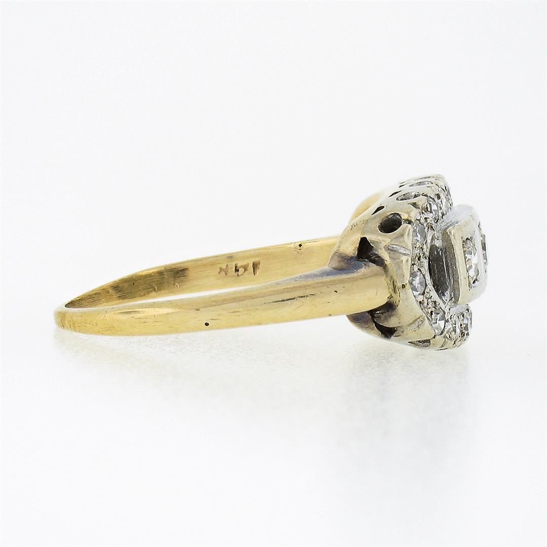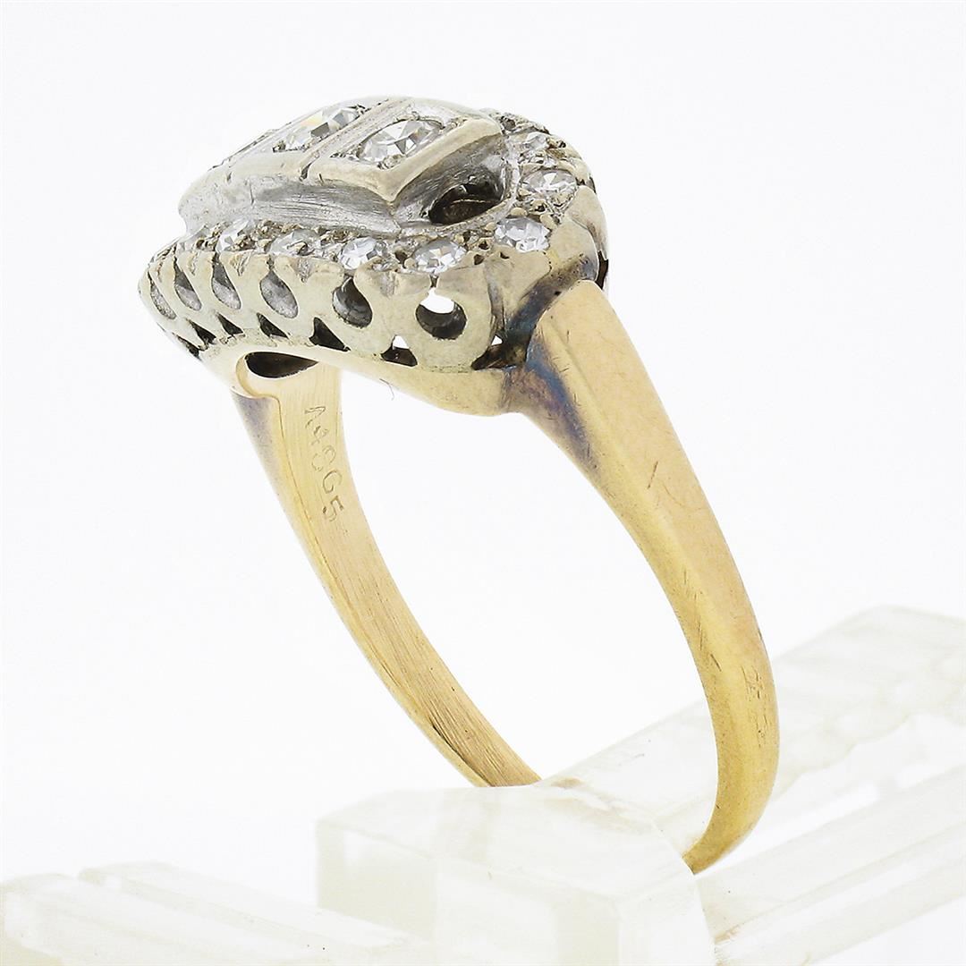 An antique solid 14k yellow & white gold ring, with 19 old single cut natural diamonds (G/H- VS1/VS2 ; 0.35ctw). The ring is size 7.0, weighs a total of 3.75 grams, and measures 9.40mm wide.
