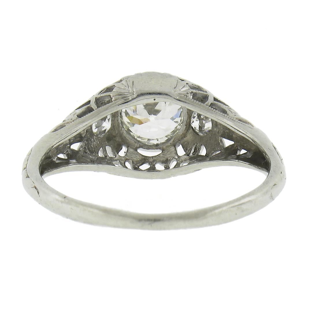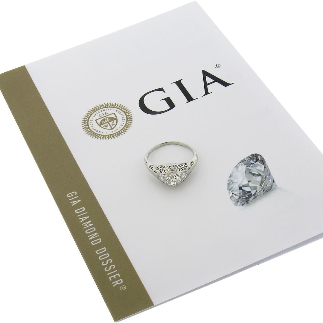 Antique Art Deco 18K Gold 0.69ctw GIA European Diamond Filigree Engagement Ring