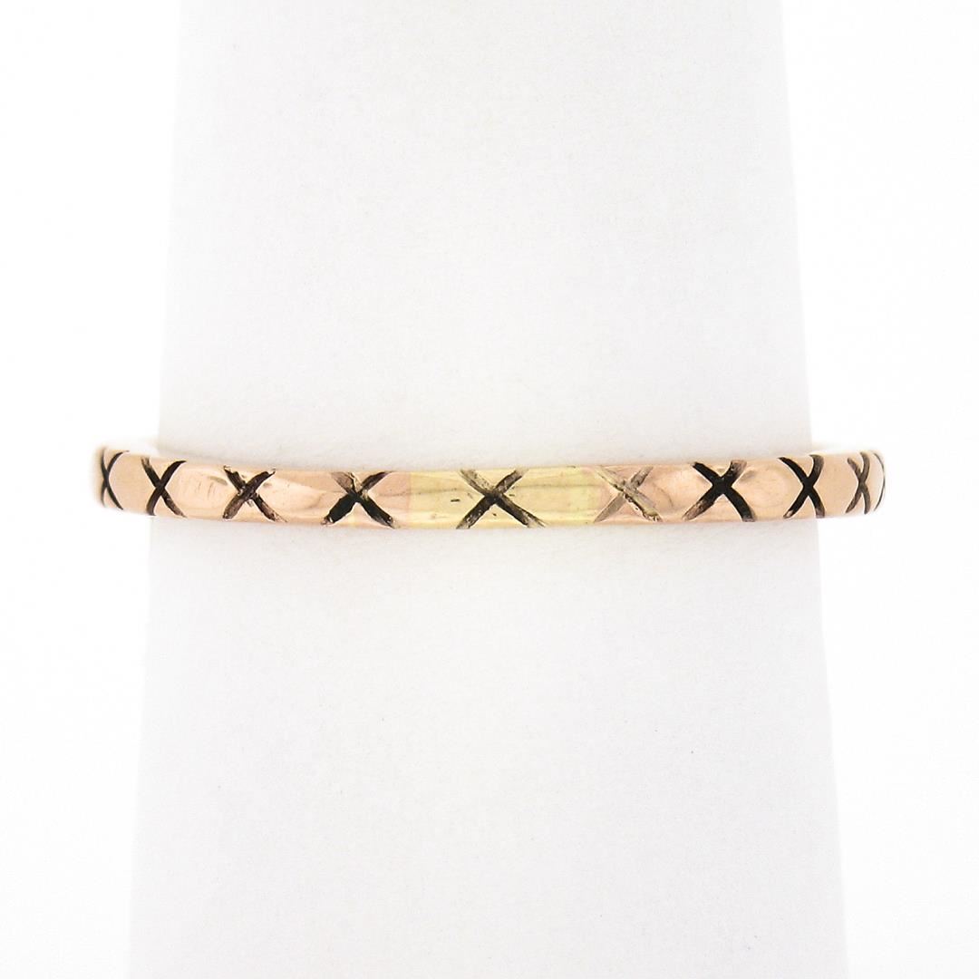 An antique solid 14k rose gold band ring. The ring is size 7.0, weighs a total of 1.80 grams, and measures 1.7mm wide.