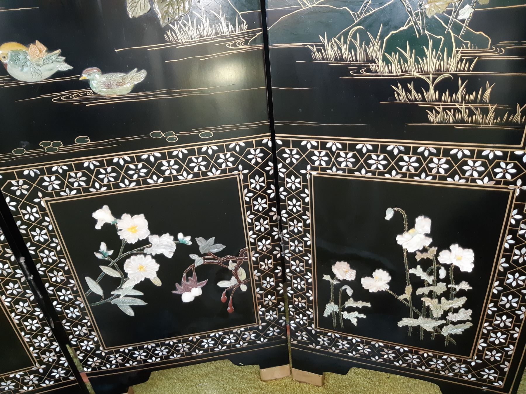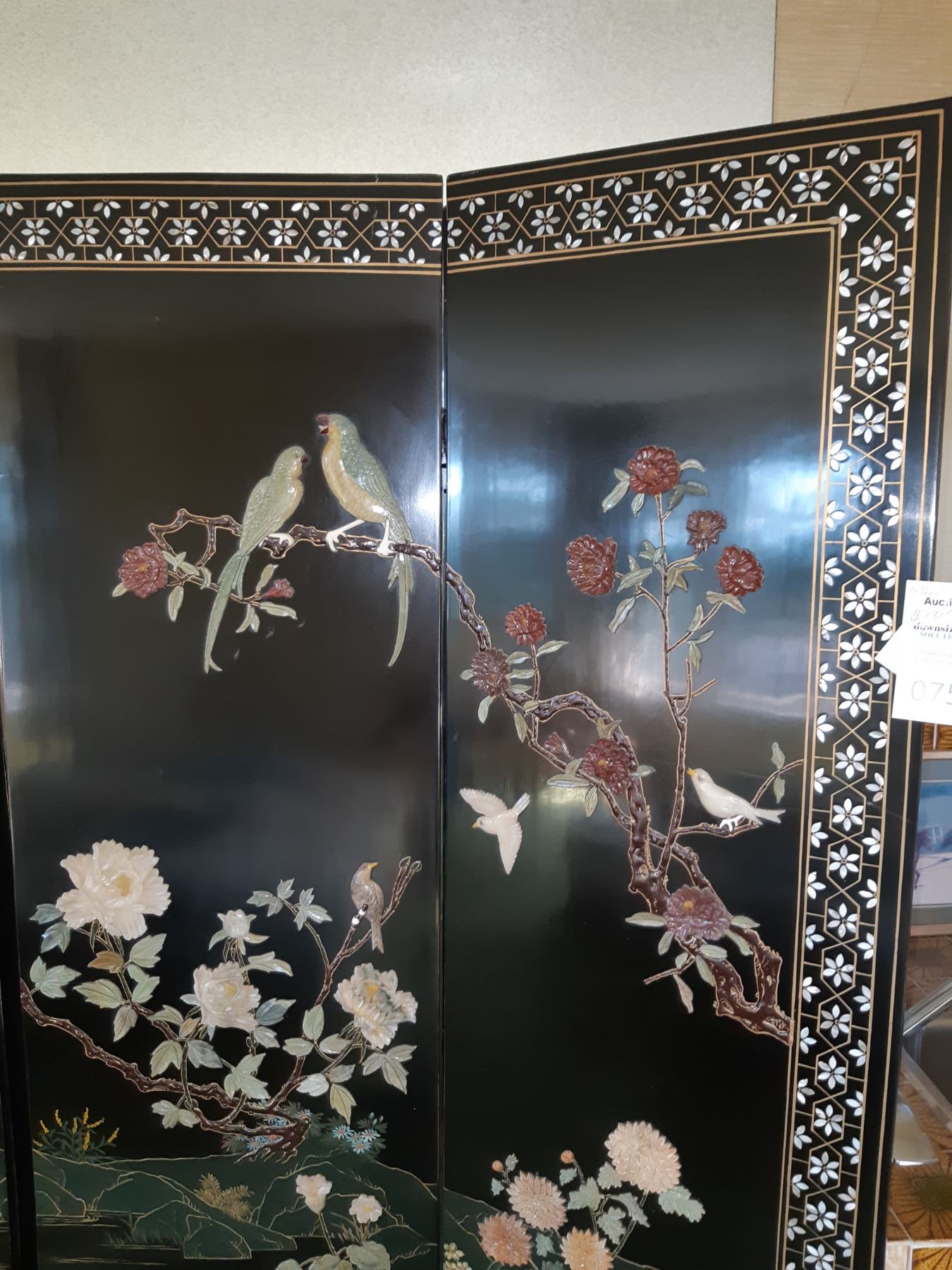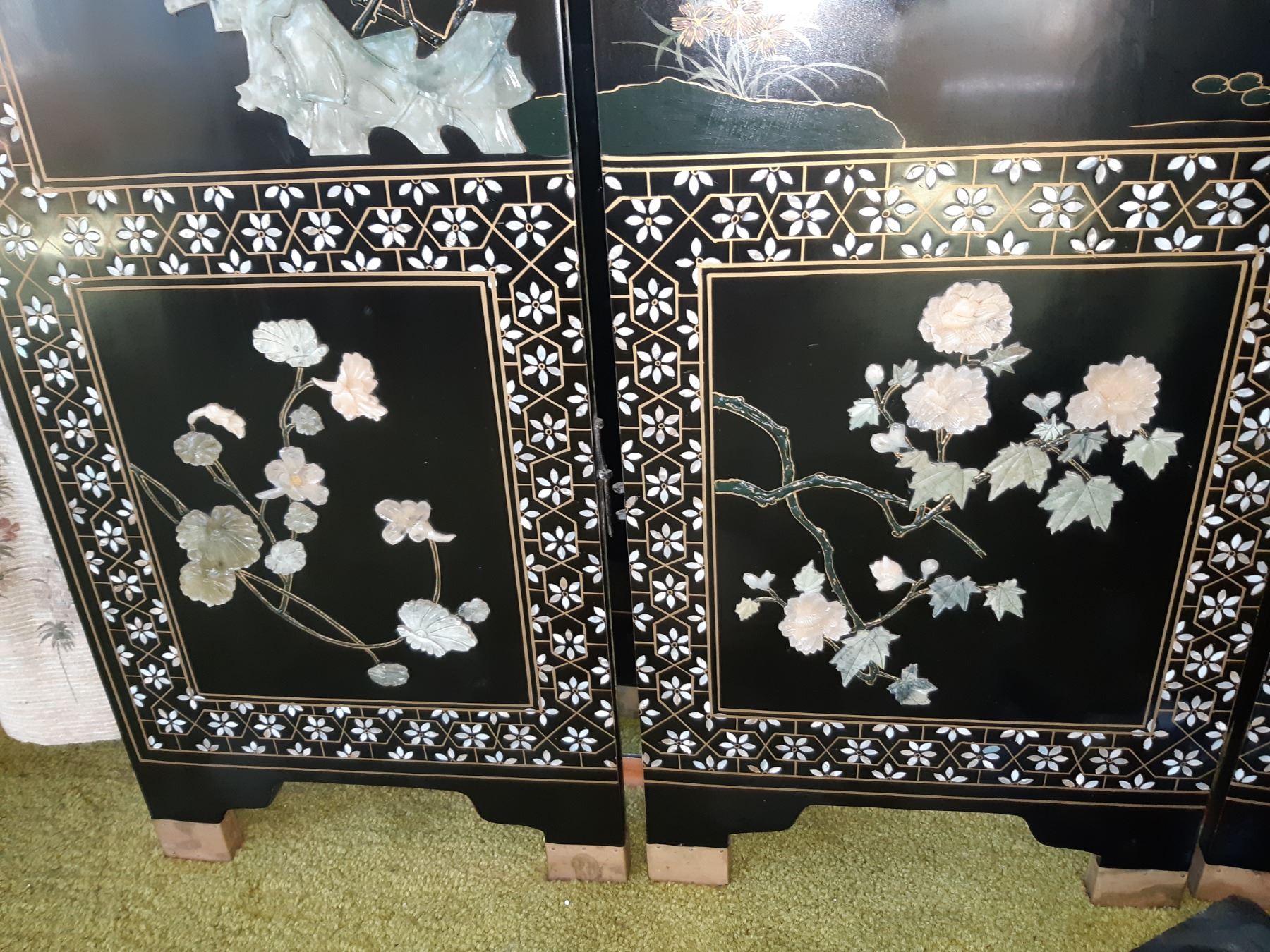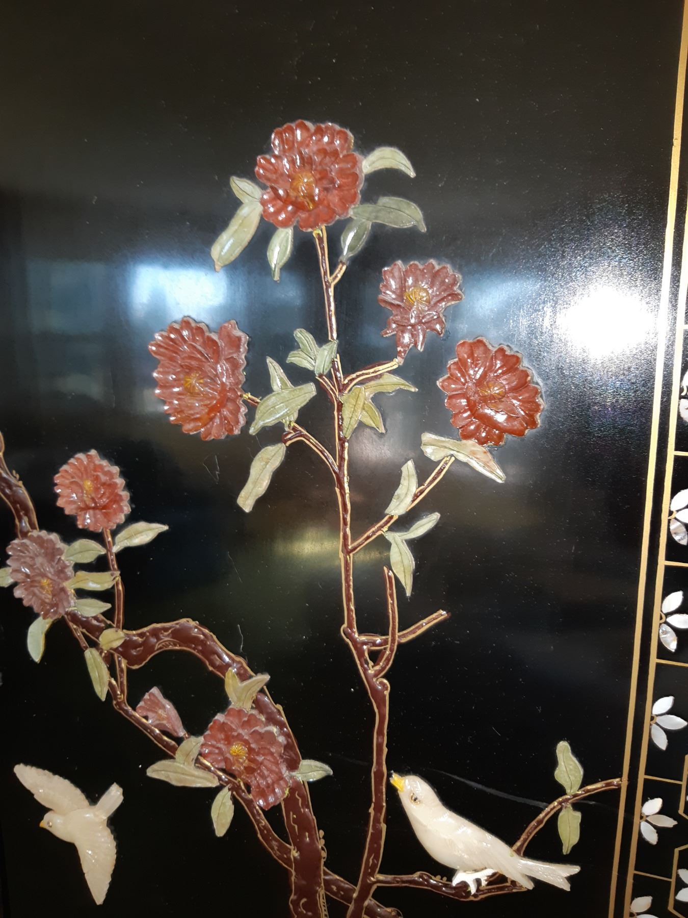 Pickup at Marsh McCormick panels 16x72 ea. black lacquered panels, jade, mother of pearl detailing. Disassembled & ready to move. Puckup at 12 pm