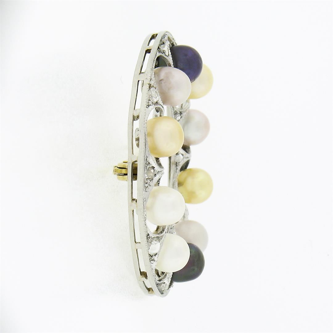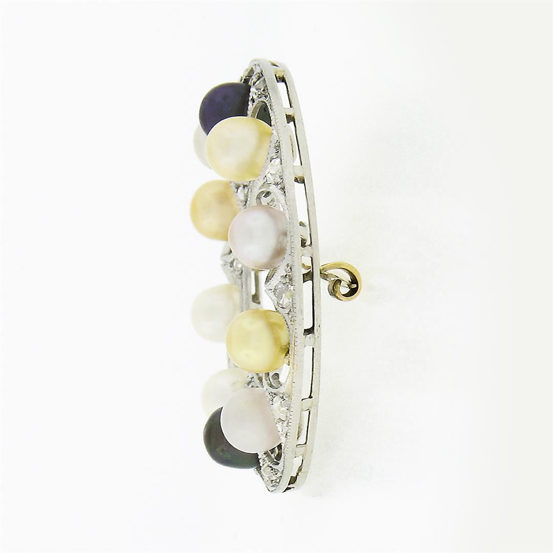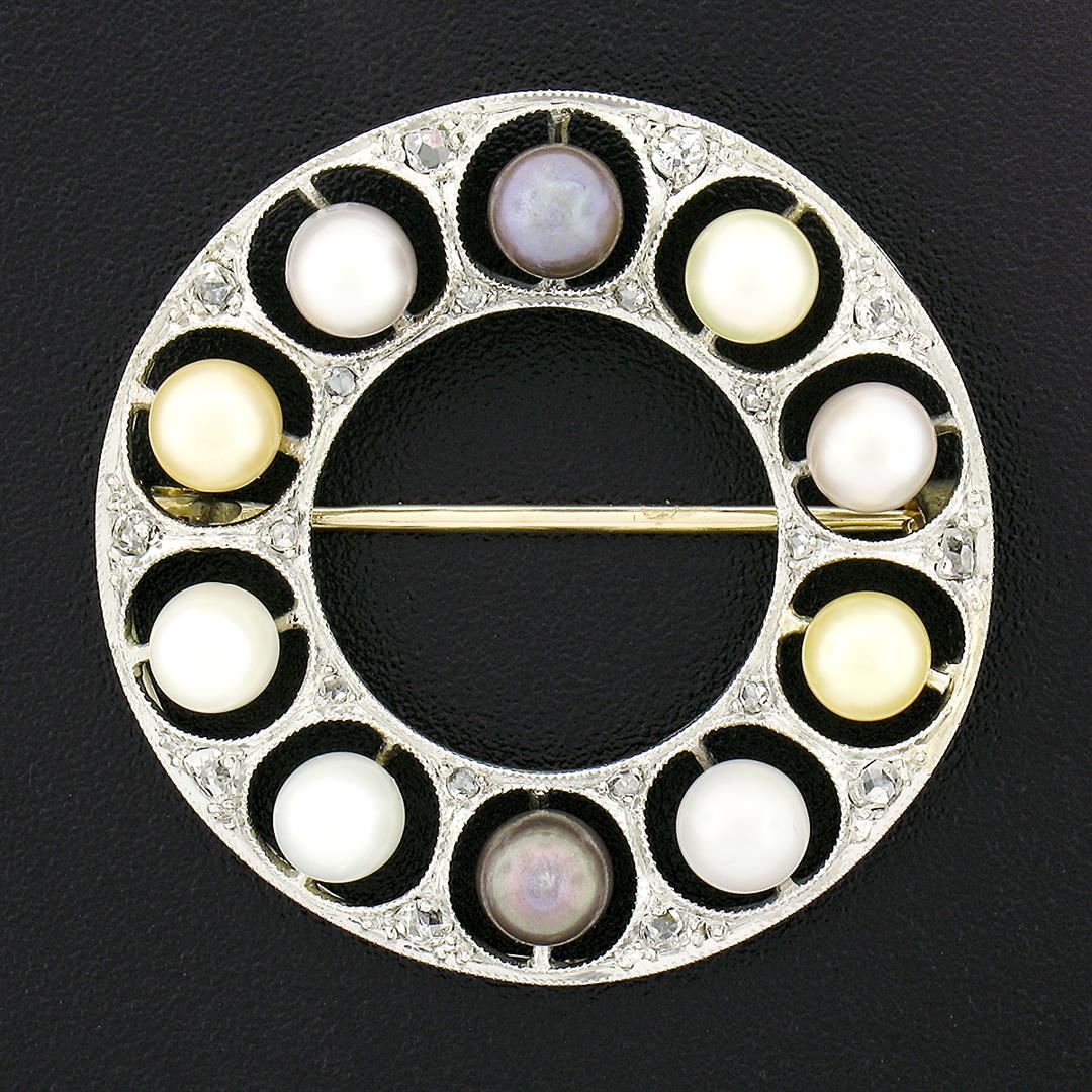 Antique Belle Epoque Platinum Multi Color Pearl Diamond Wreath Circle Pin Brooch