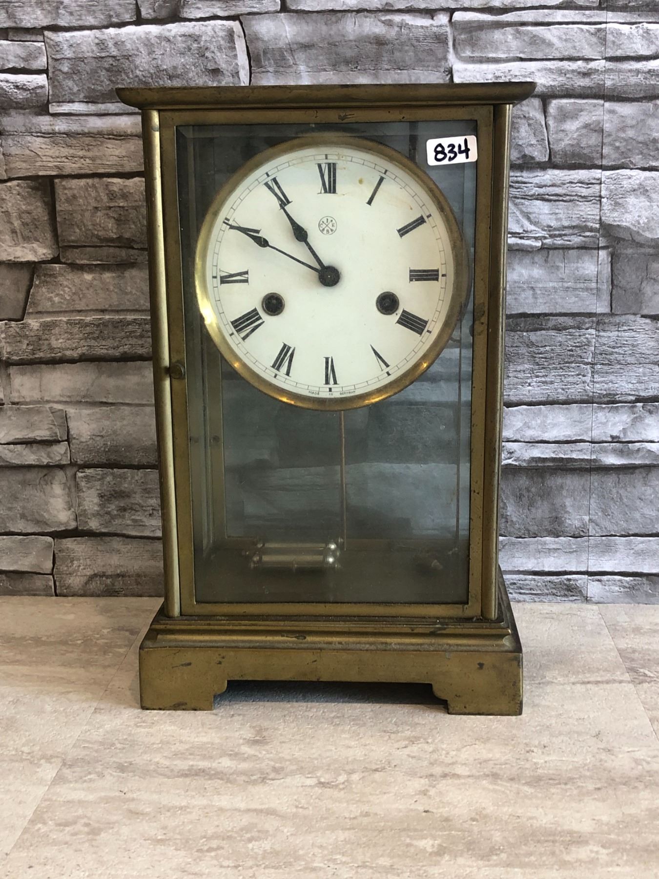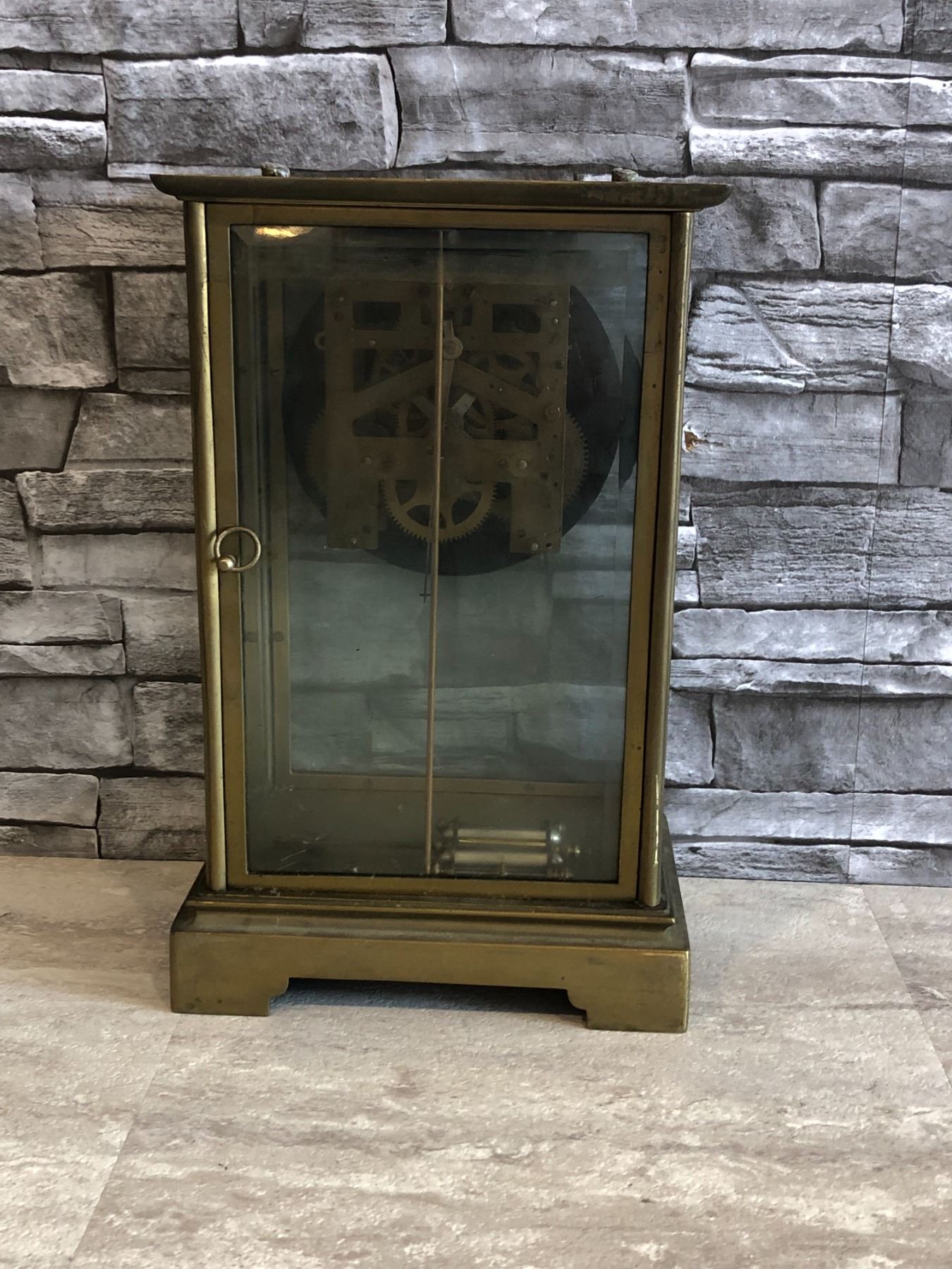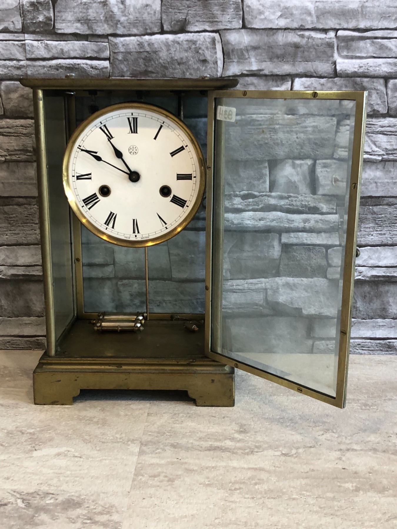 Antique Brass Four Glass French Mantle Clock - 13 H x 8.5  x 6