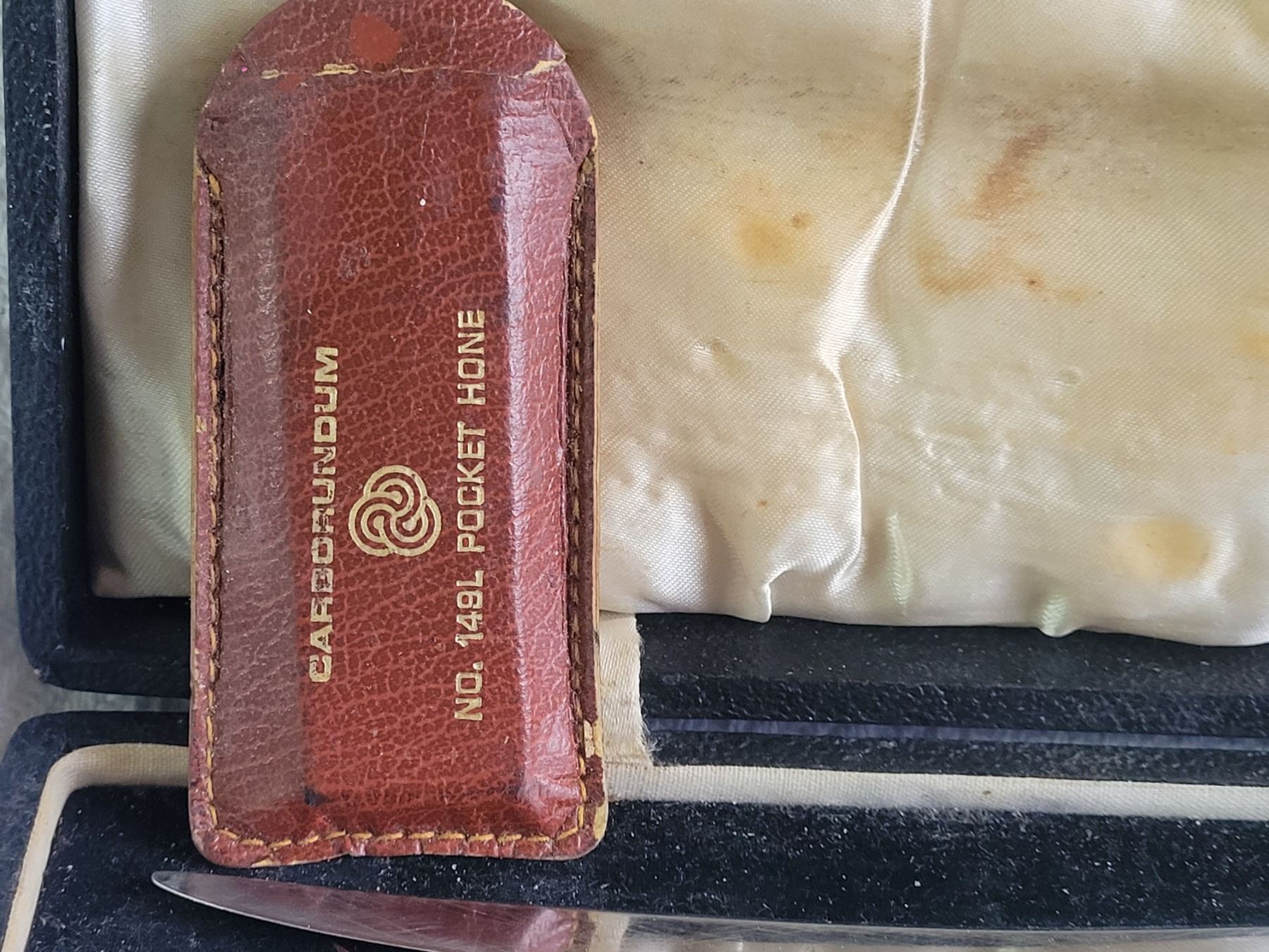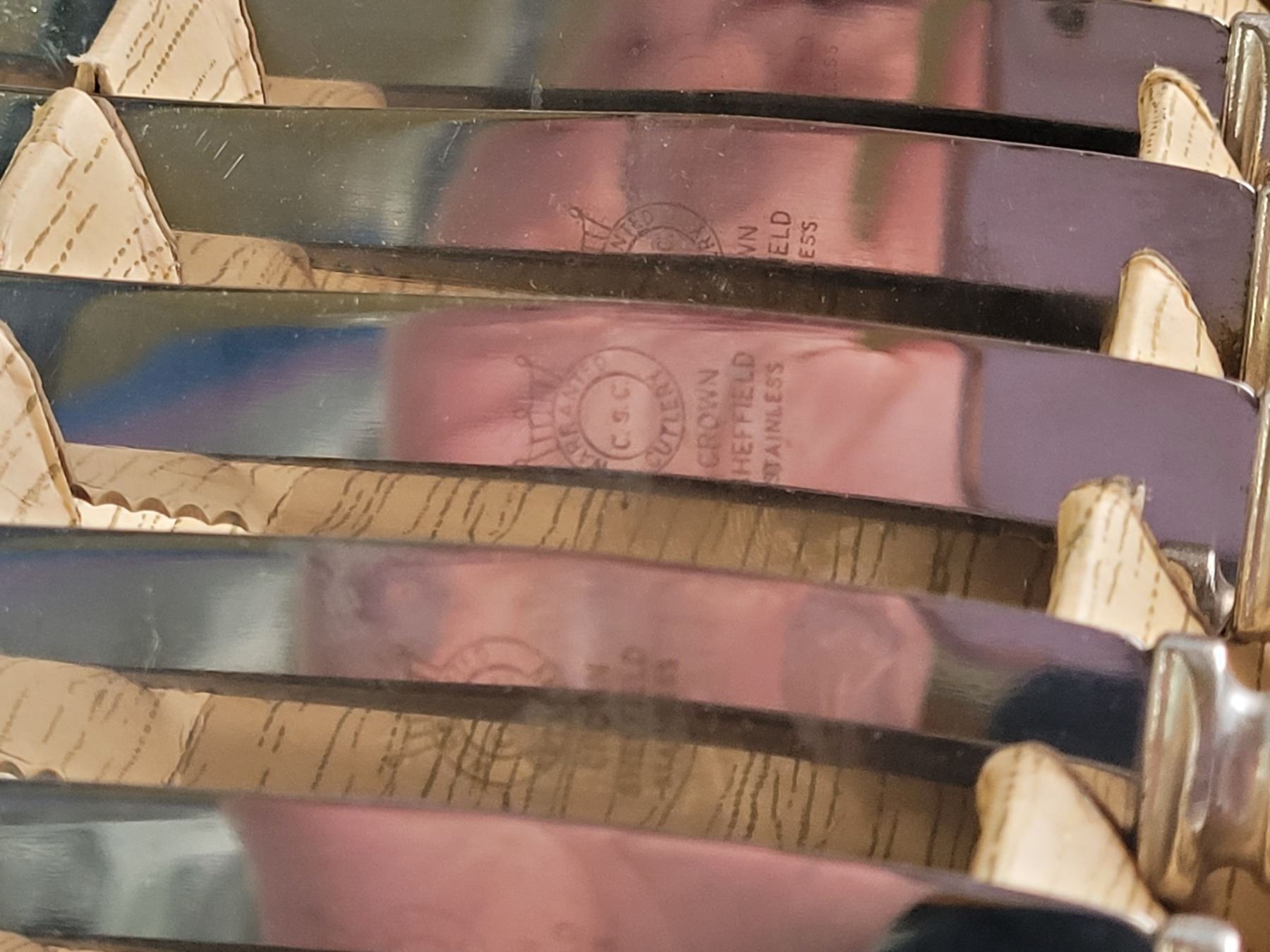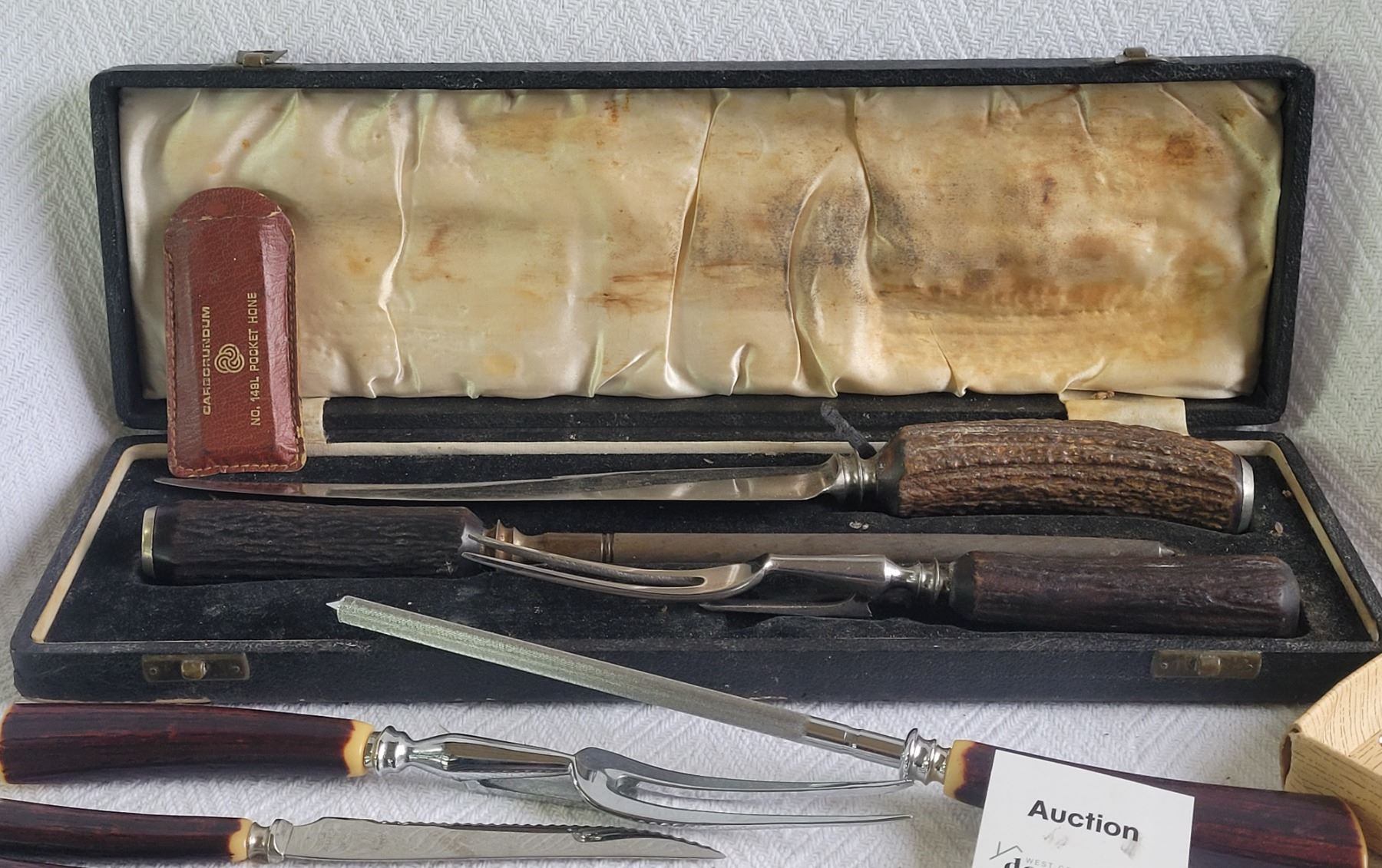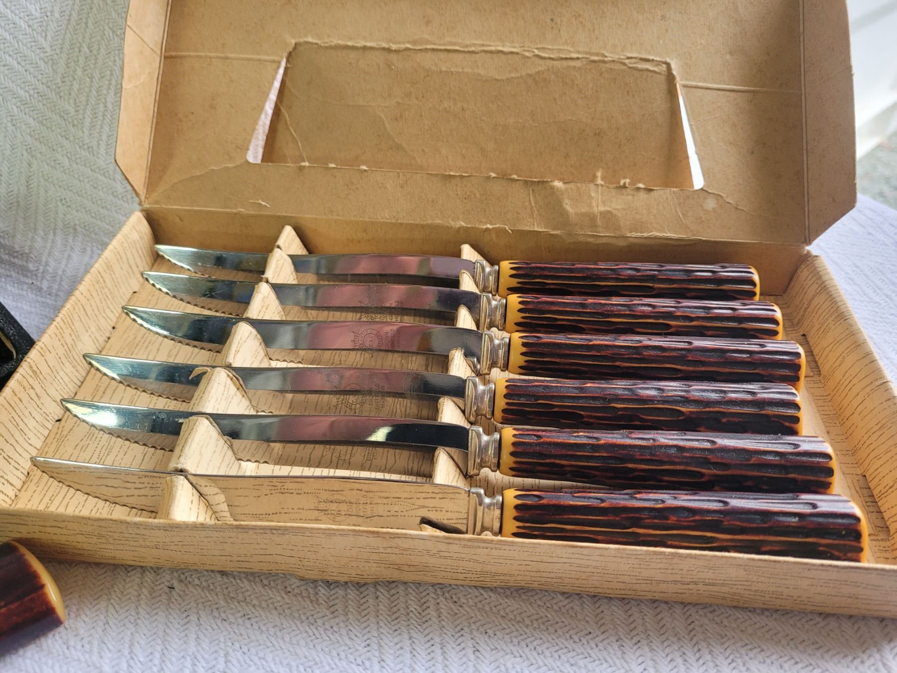 Carving set with antler handles. set of steak knives with faux bone handles. Pickup at 9 am