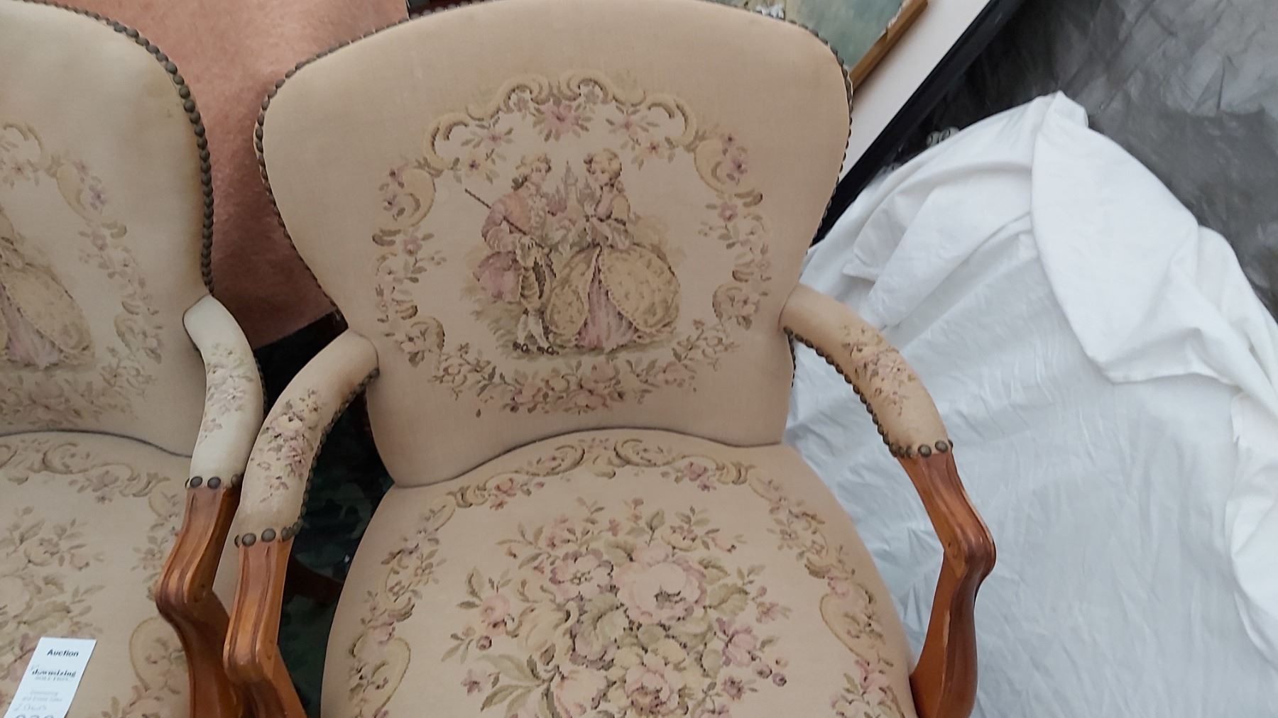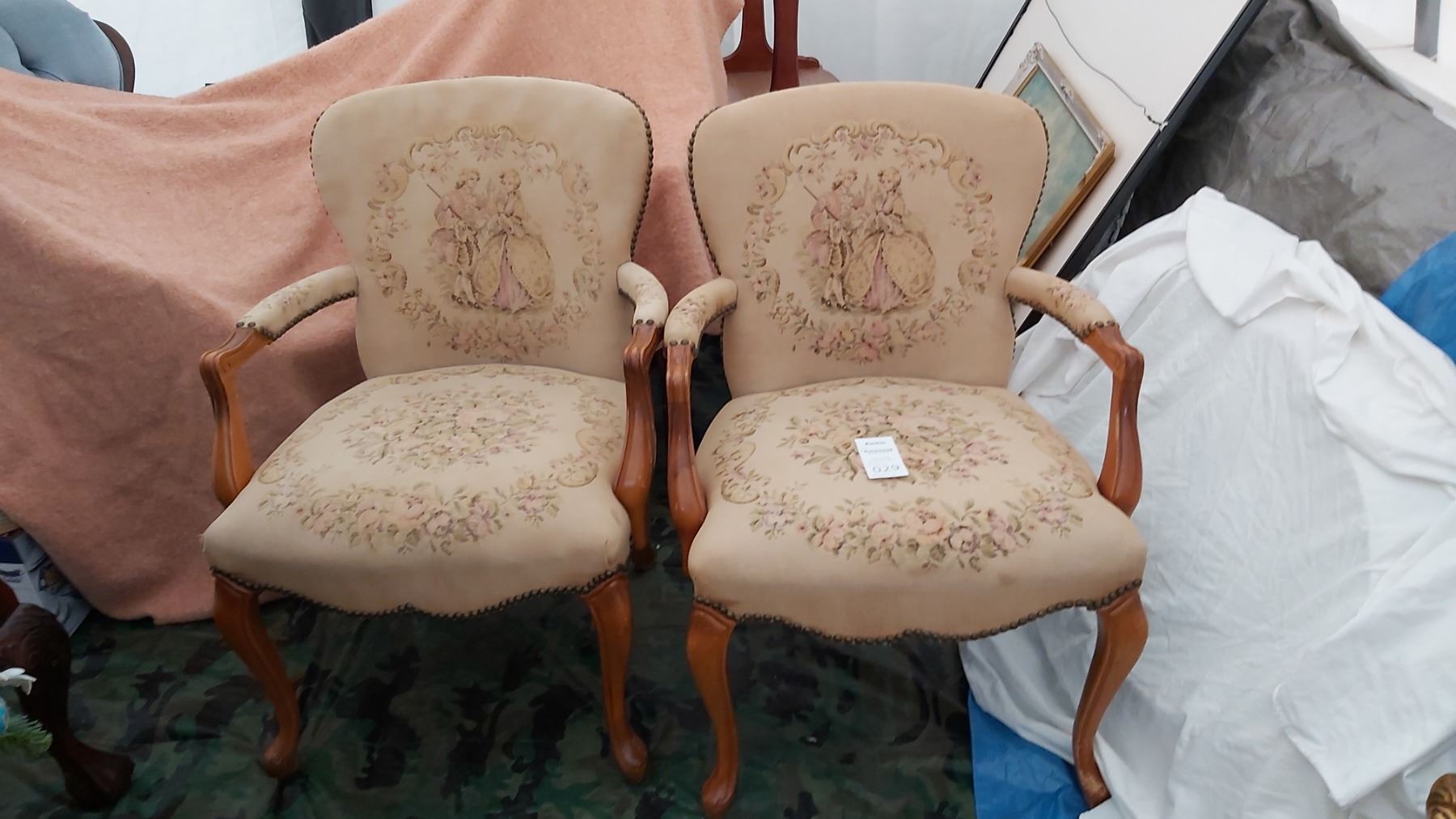2 Antique parlor chairs 22x20x32 note stains Pickup at 11 am