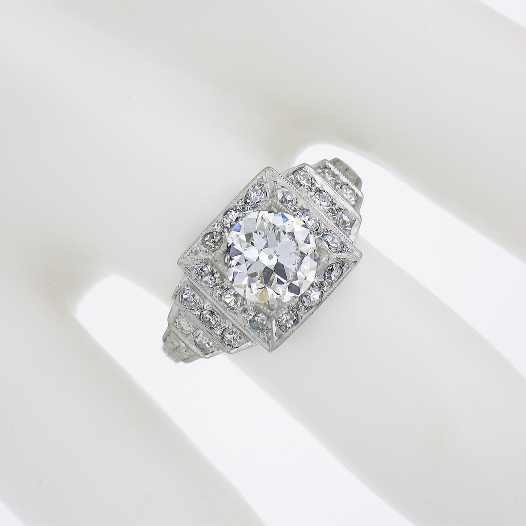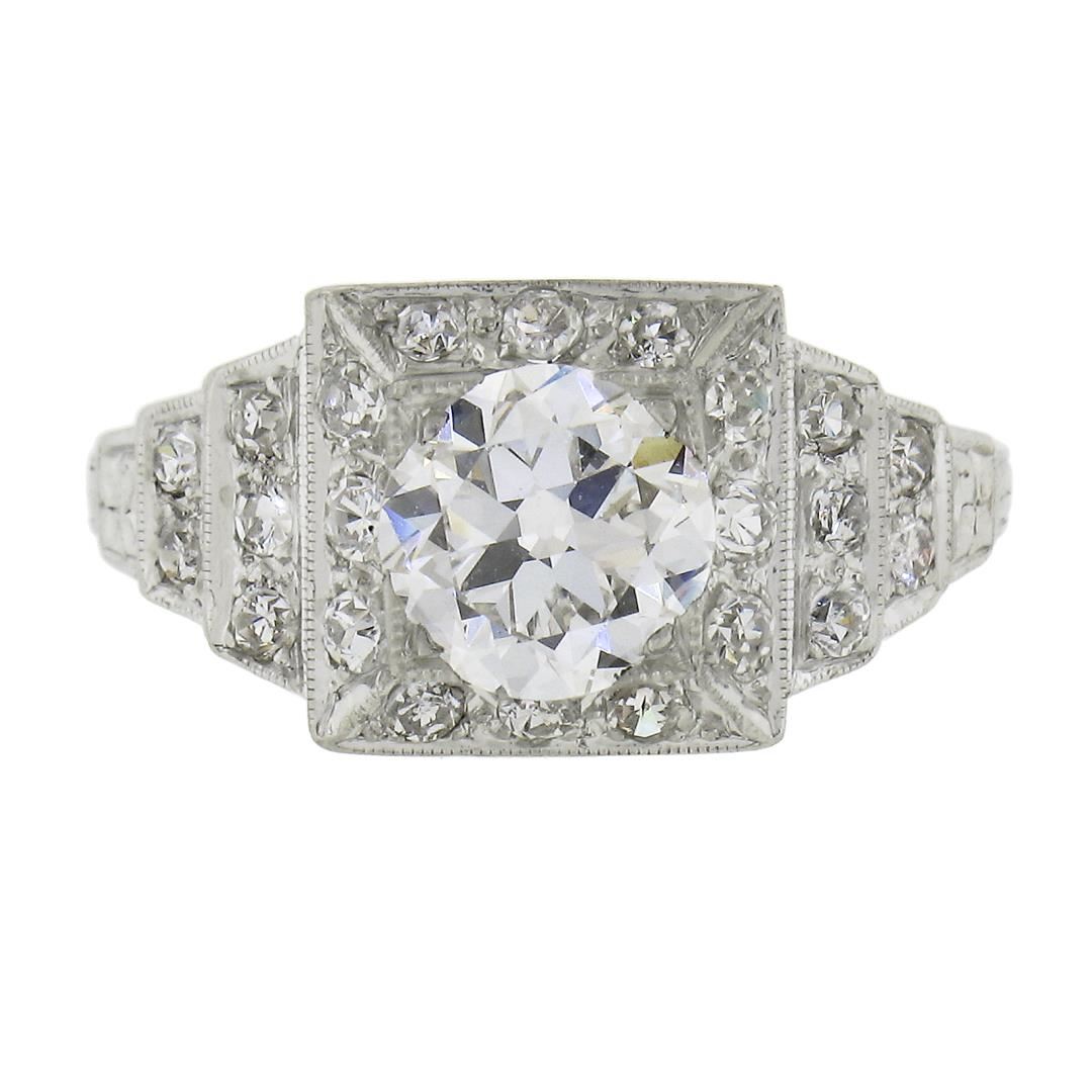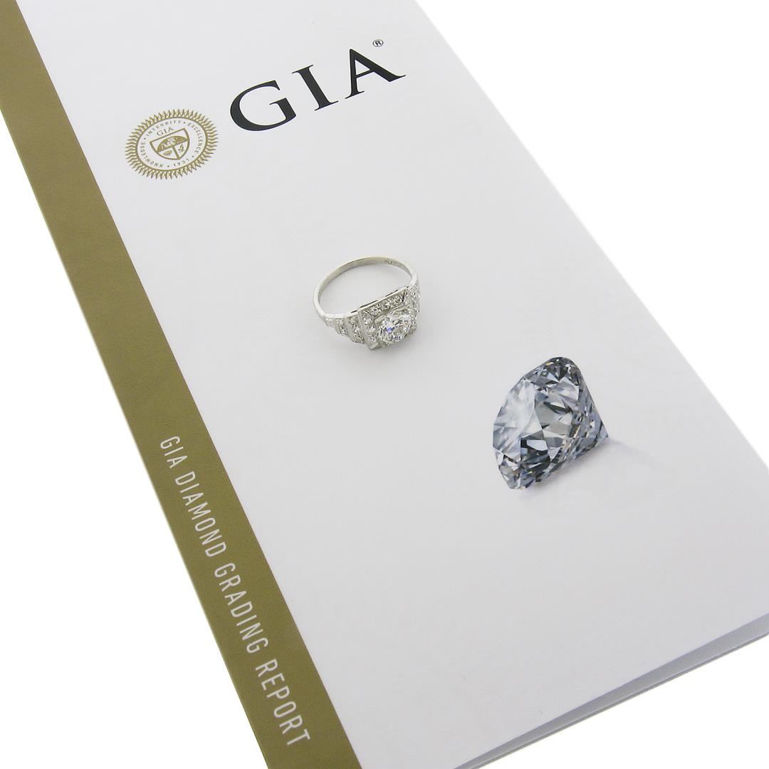 Antique Classic Art Deco Platinum 1.64ct GIA Old Diamond Pyramid Engagement Ring