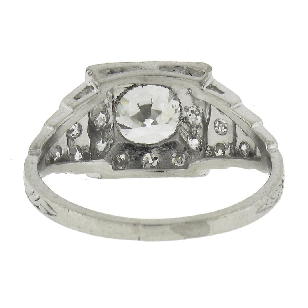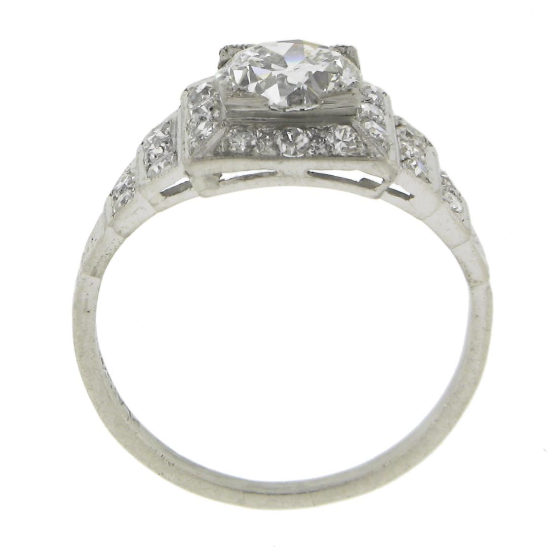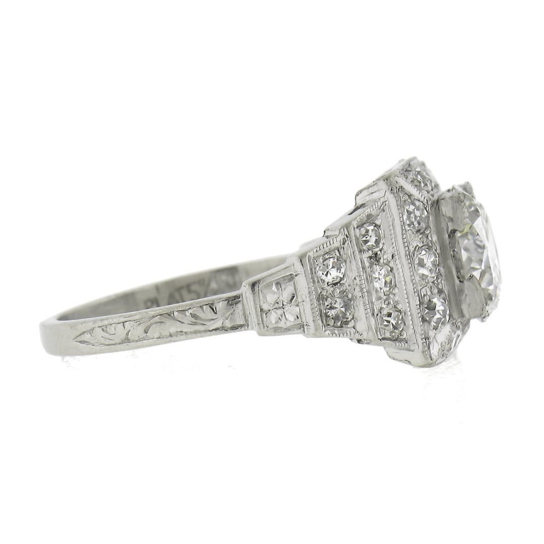 Antique Classic Art Deco Platinum 1.64ct GIA Old Diamond Pyramid Engagement Ring