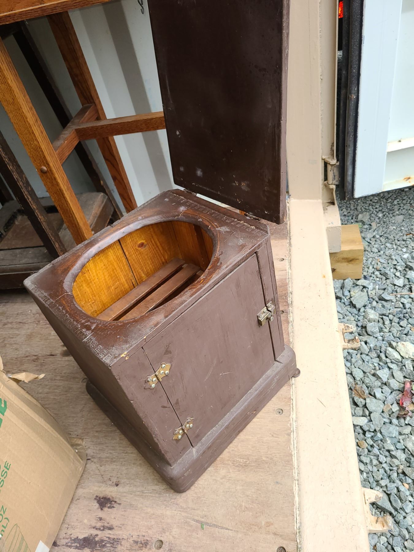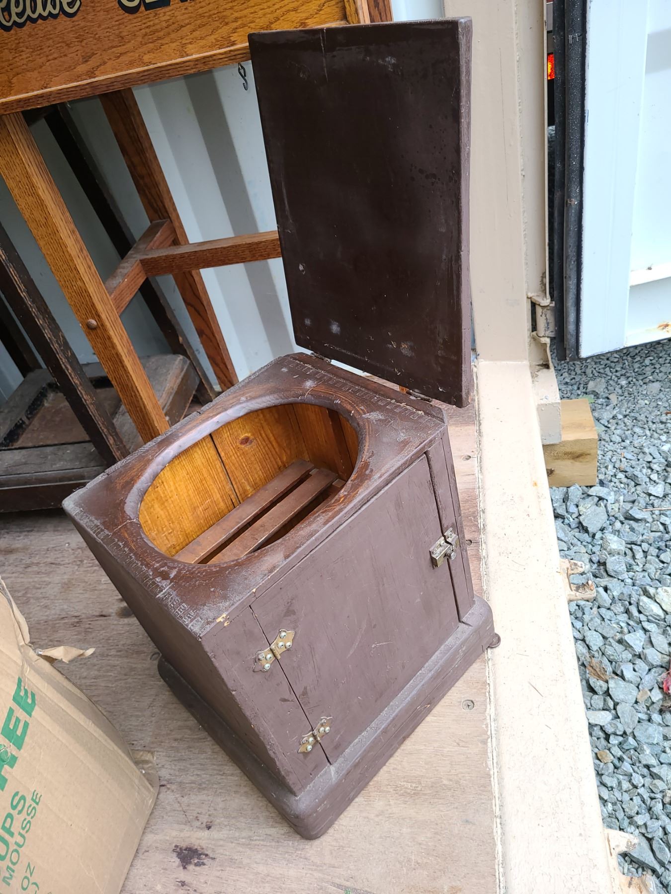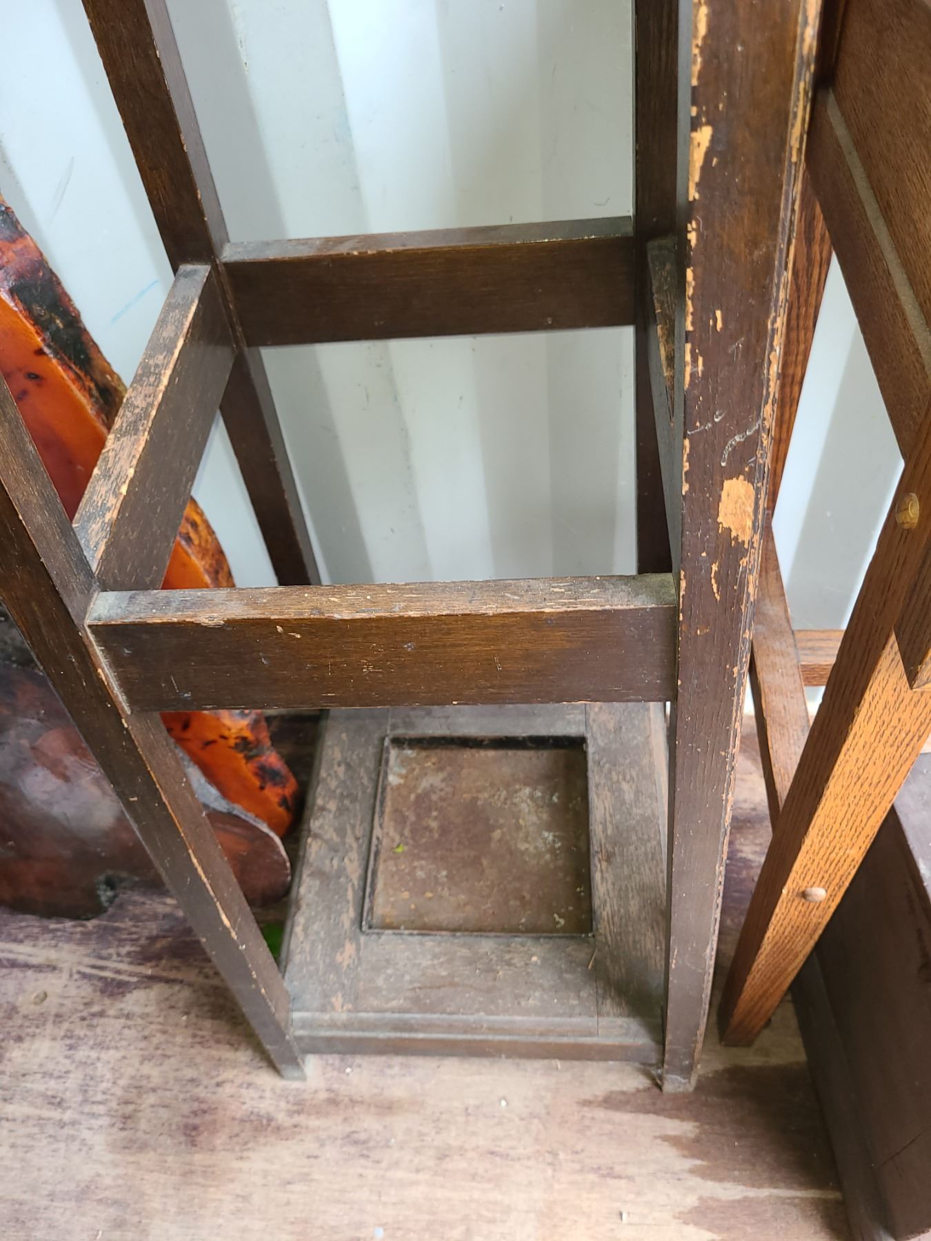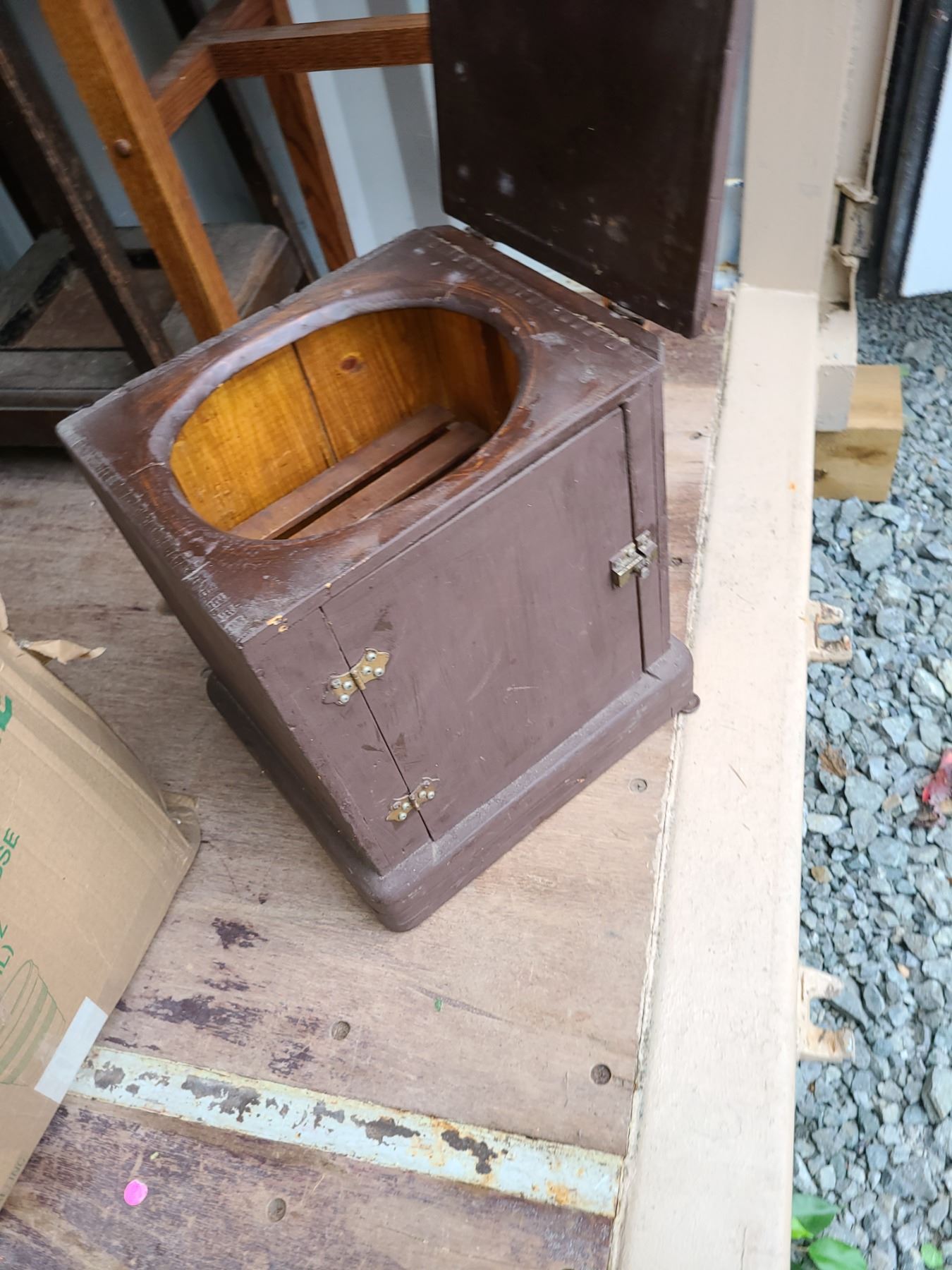 Antique coat rack about 6’, oak podium, small wooden cabinet. Pickup at 9 am