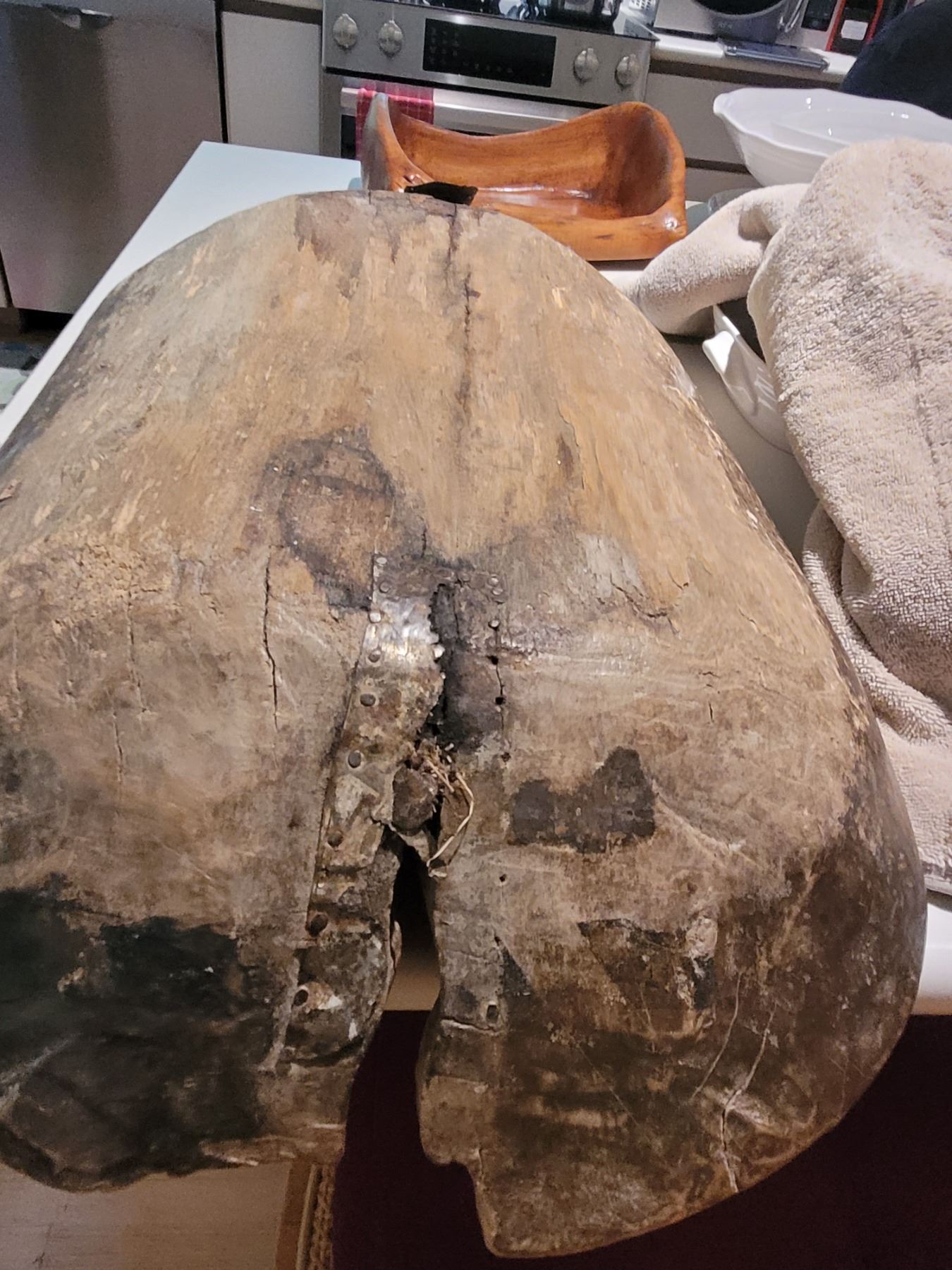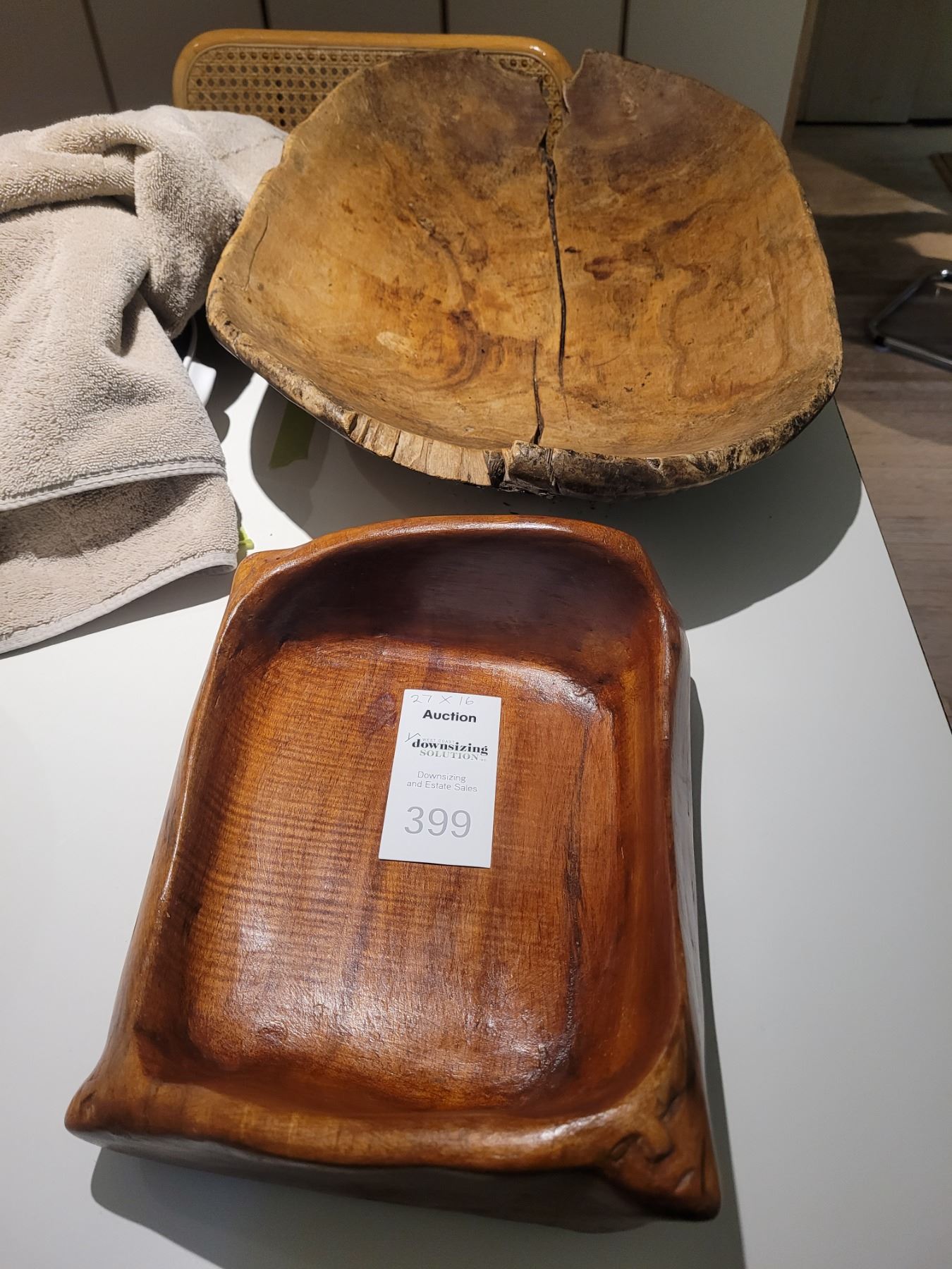 Dough bowl rough condition but nice decor piece, carved wood bowl, pickup 9am