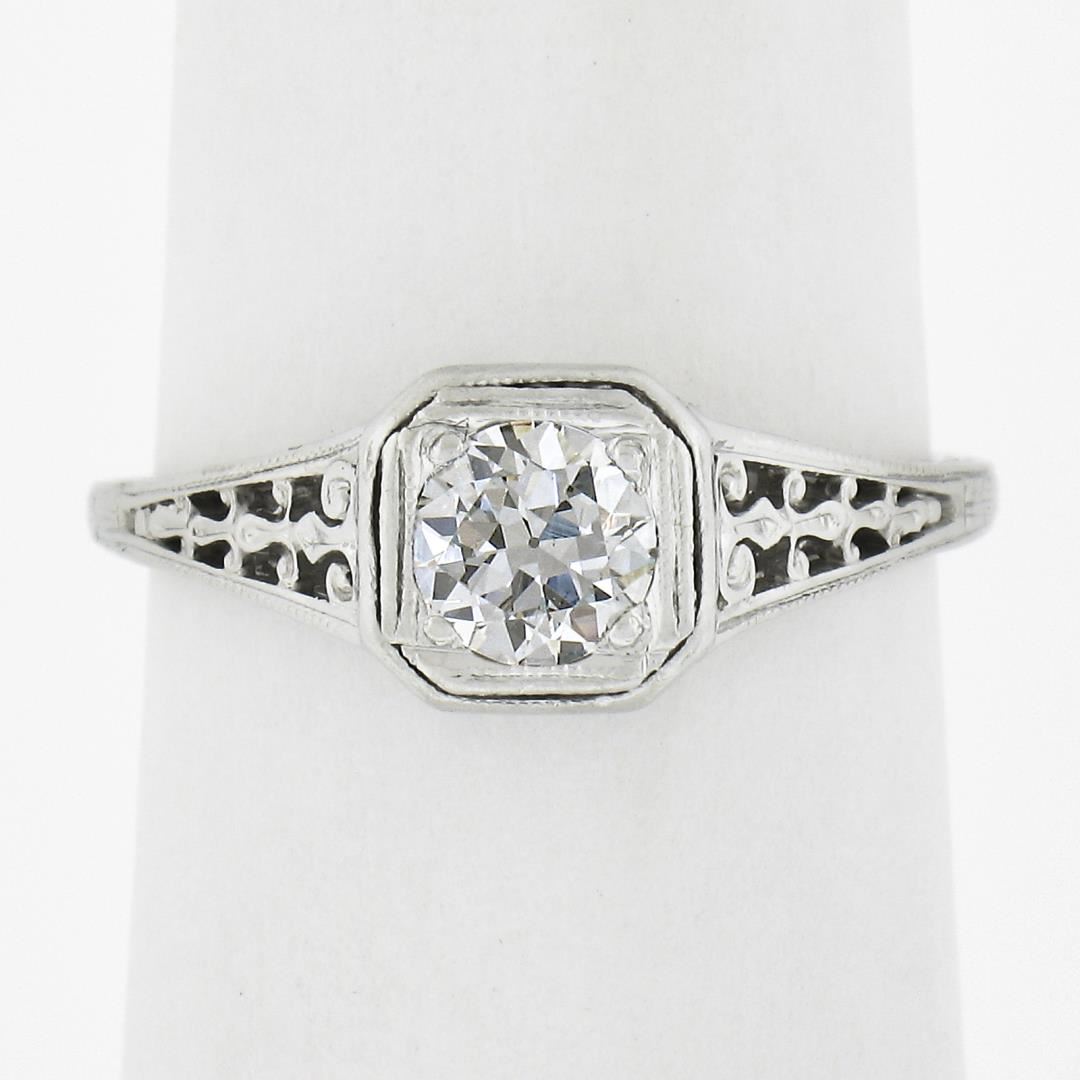 Antique Edwardian Platinum 0.47 ctw Old European Diamond Filigree Engagement Rin