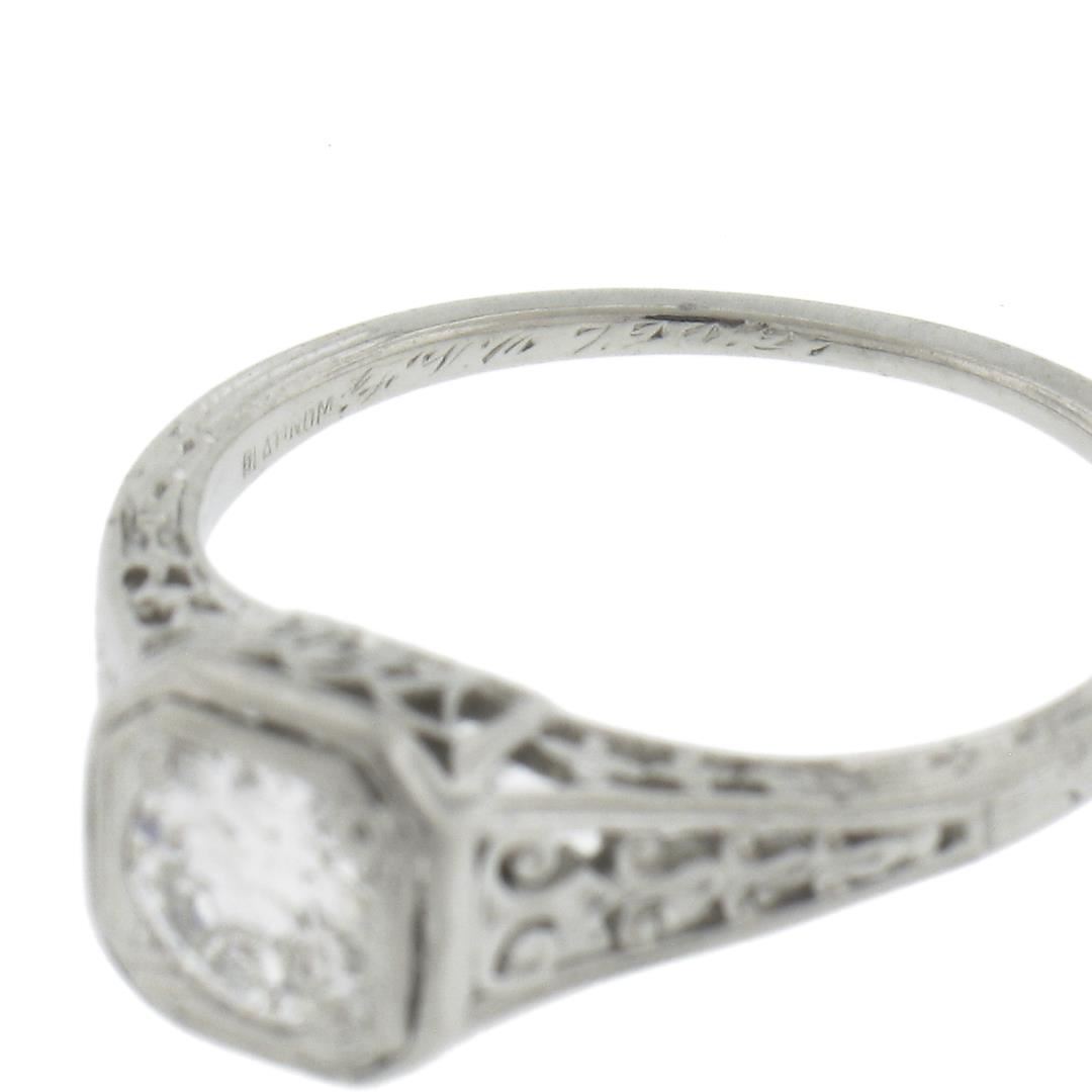 An antiuque solid platinum engagement ring, with 1 old european cut natural diamond (G - VS2 ; 0.47ct). The ring is size 6.0, weighs a total of 3.24 grams, and measures 7mm wide.