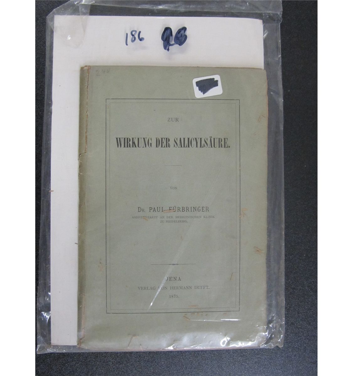 Antique German Medical Journal - 1875 Zur Wirkung Der Salicylsaure, Dr. Paul Furbringer