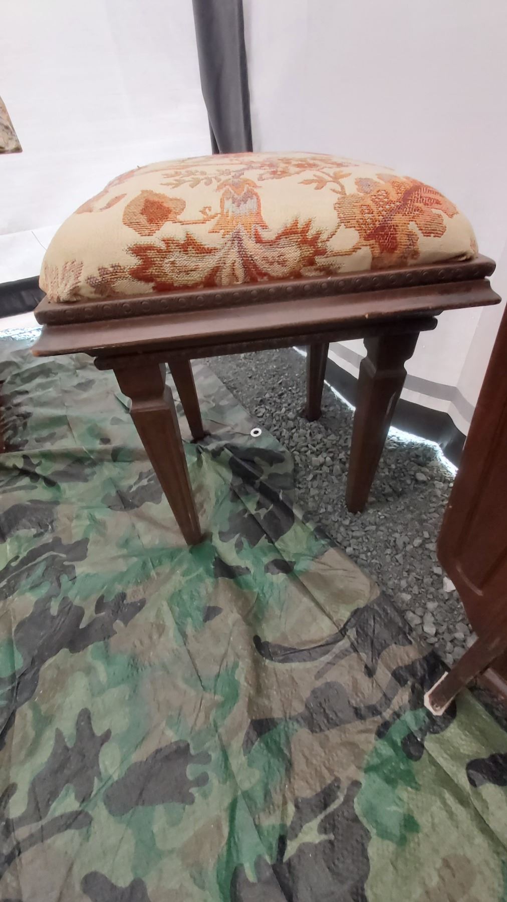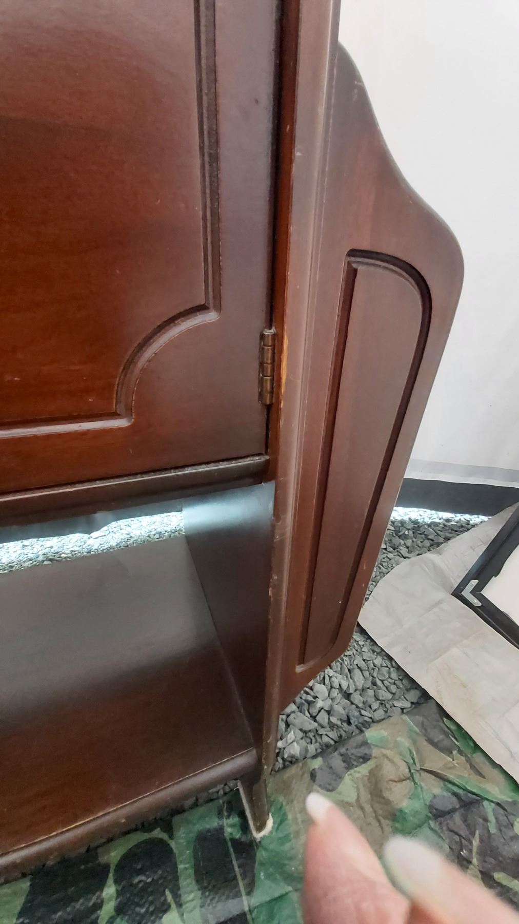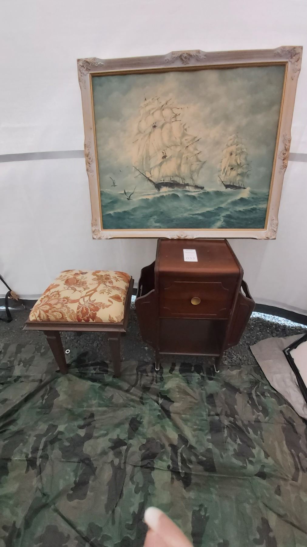 Antique cupboard 19x11x24 Large framed print and stool. Pickup at 11 am