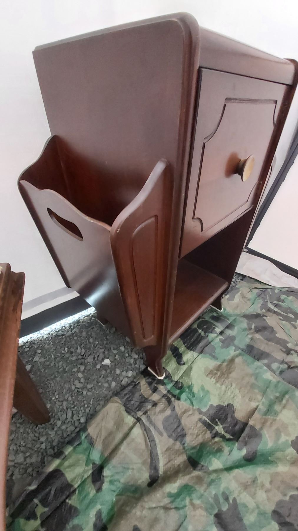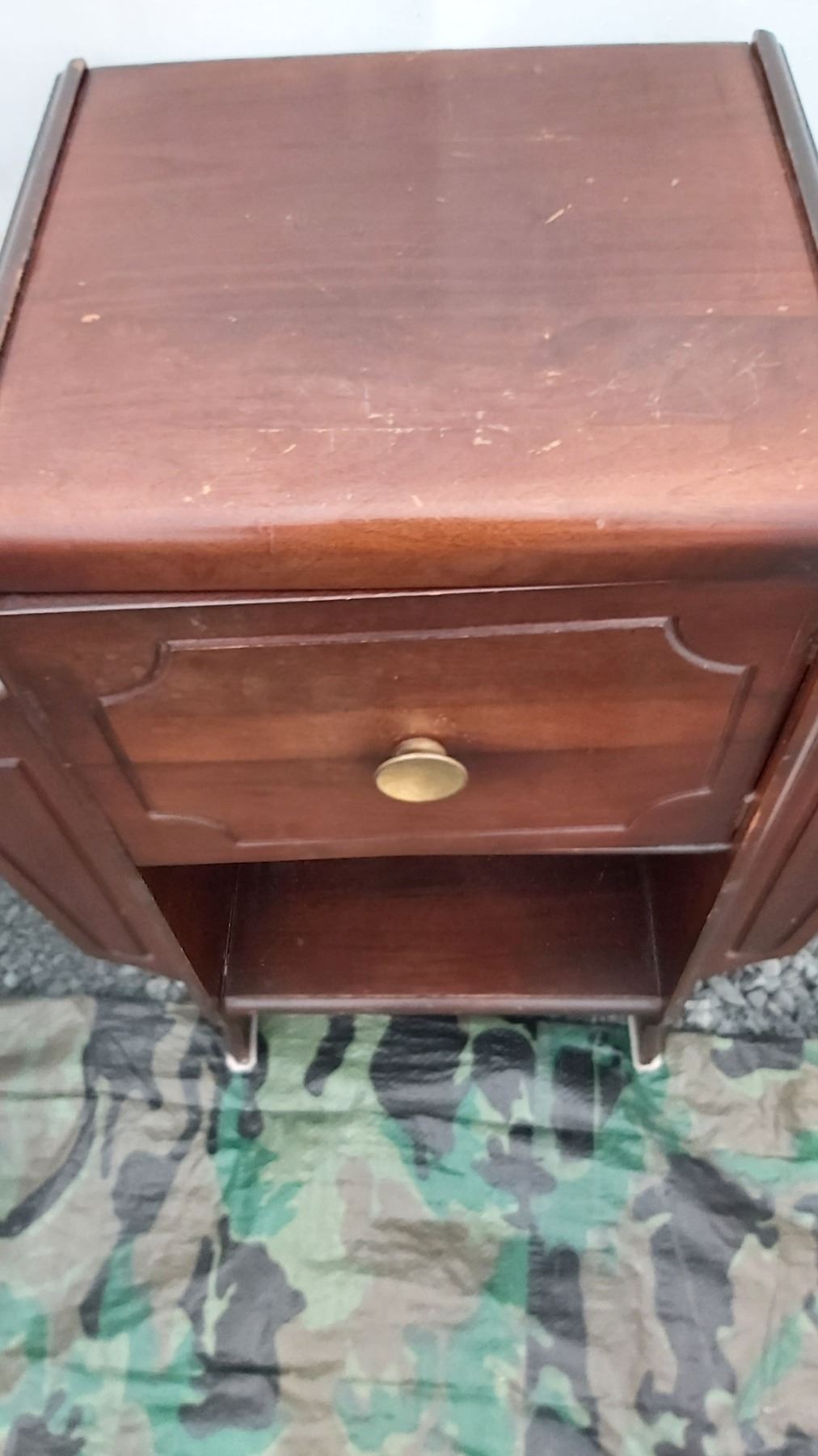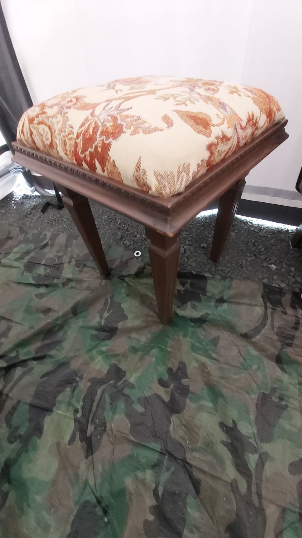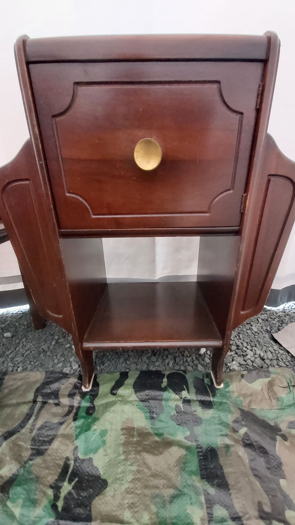 Antique cupboard 19x11x24 Large framed print and stool. Pickup at 11 am