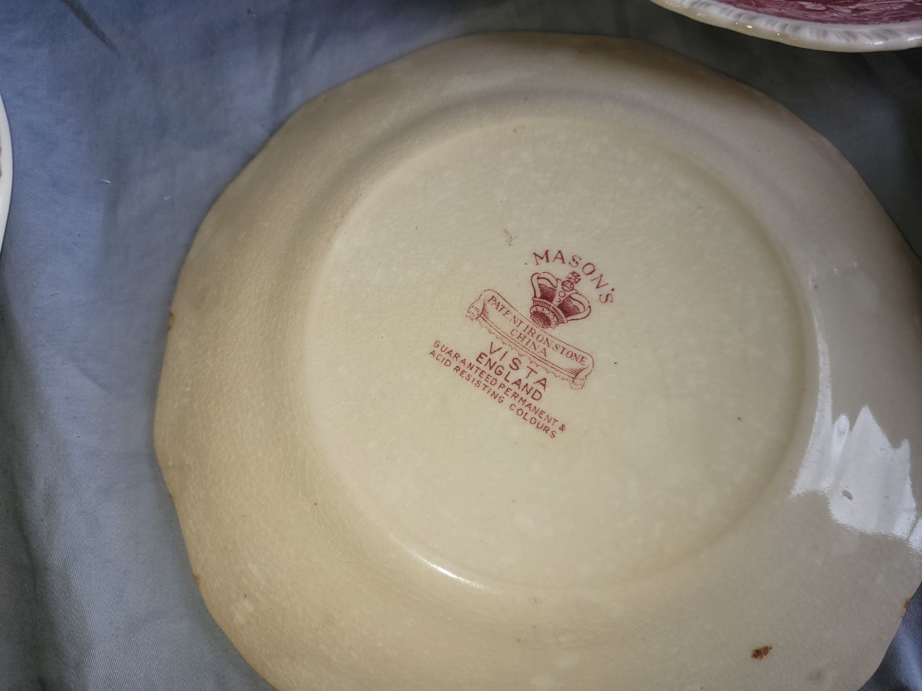 Mason's Vista dinnerware, consists of 10 Dinner plates, 8 Salad plates, 4 Side plates, 6 large cups, 2 smaller cups and 8 Saucers. Note glaze crakling and some discolouration due to age. Bring packing and pickup at 9 am