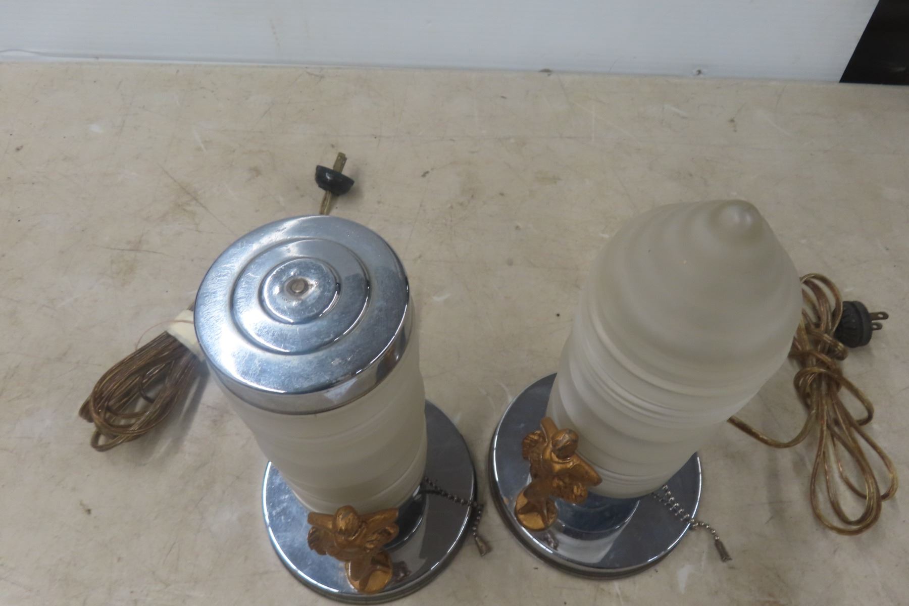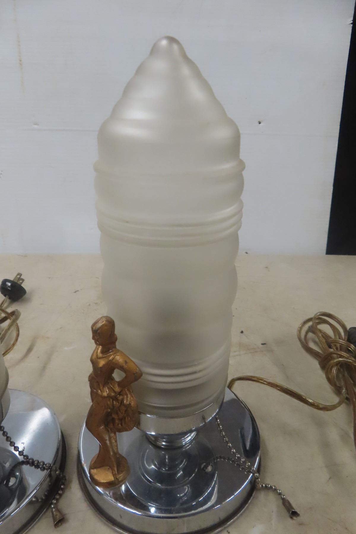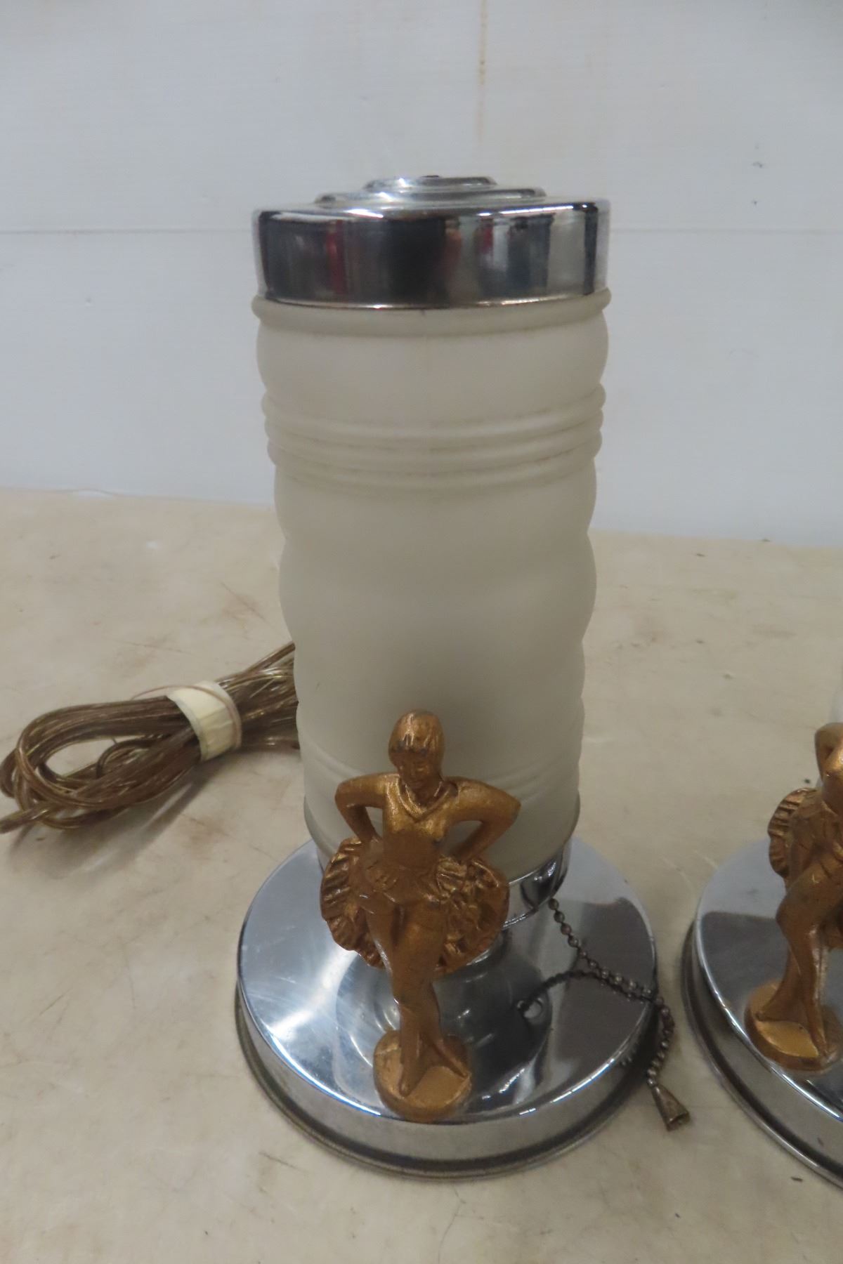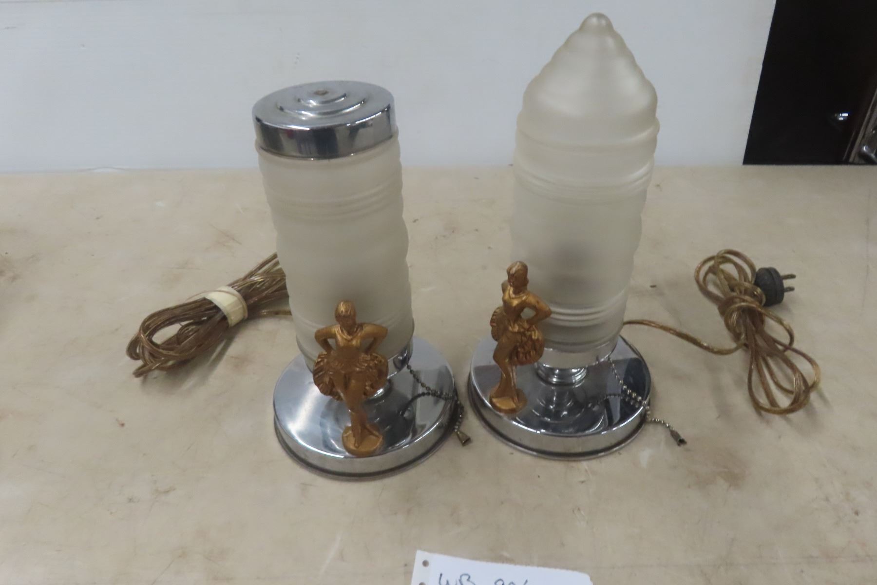 Antique Pair of Art Deco Desk Risqué Lamps, Working