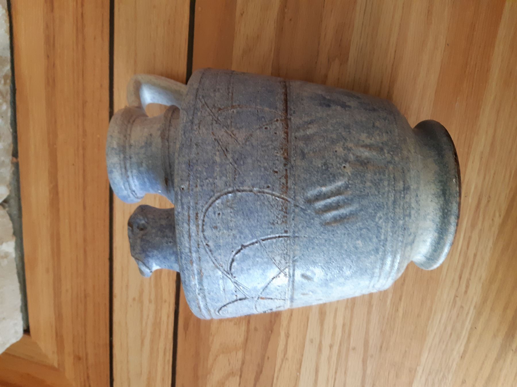 Antique lined pot made in the USA metal vase, artisan pot please bring packing materials pick up at 9 am
