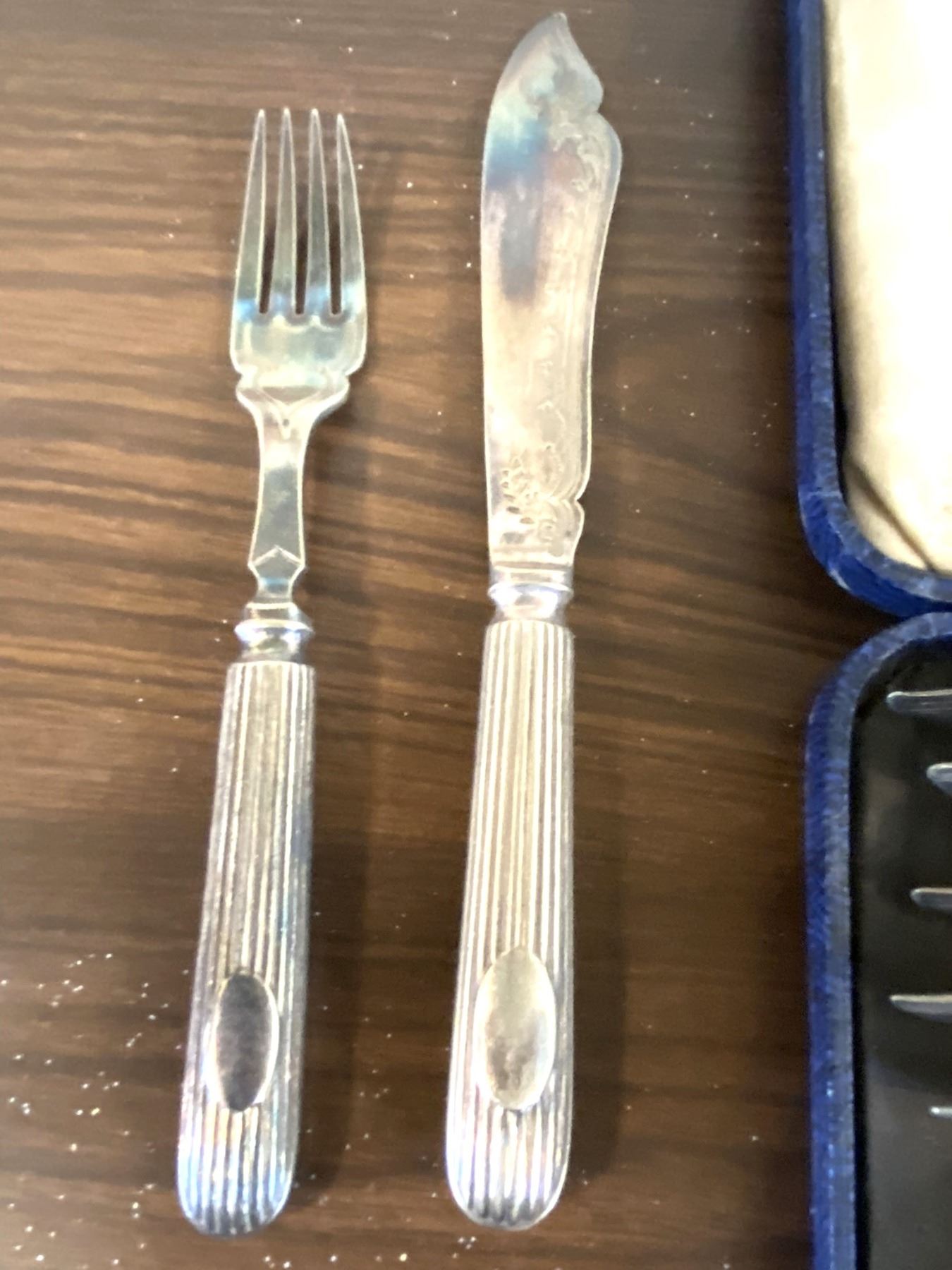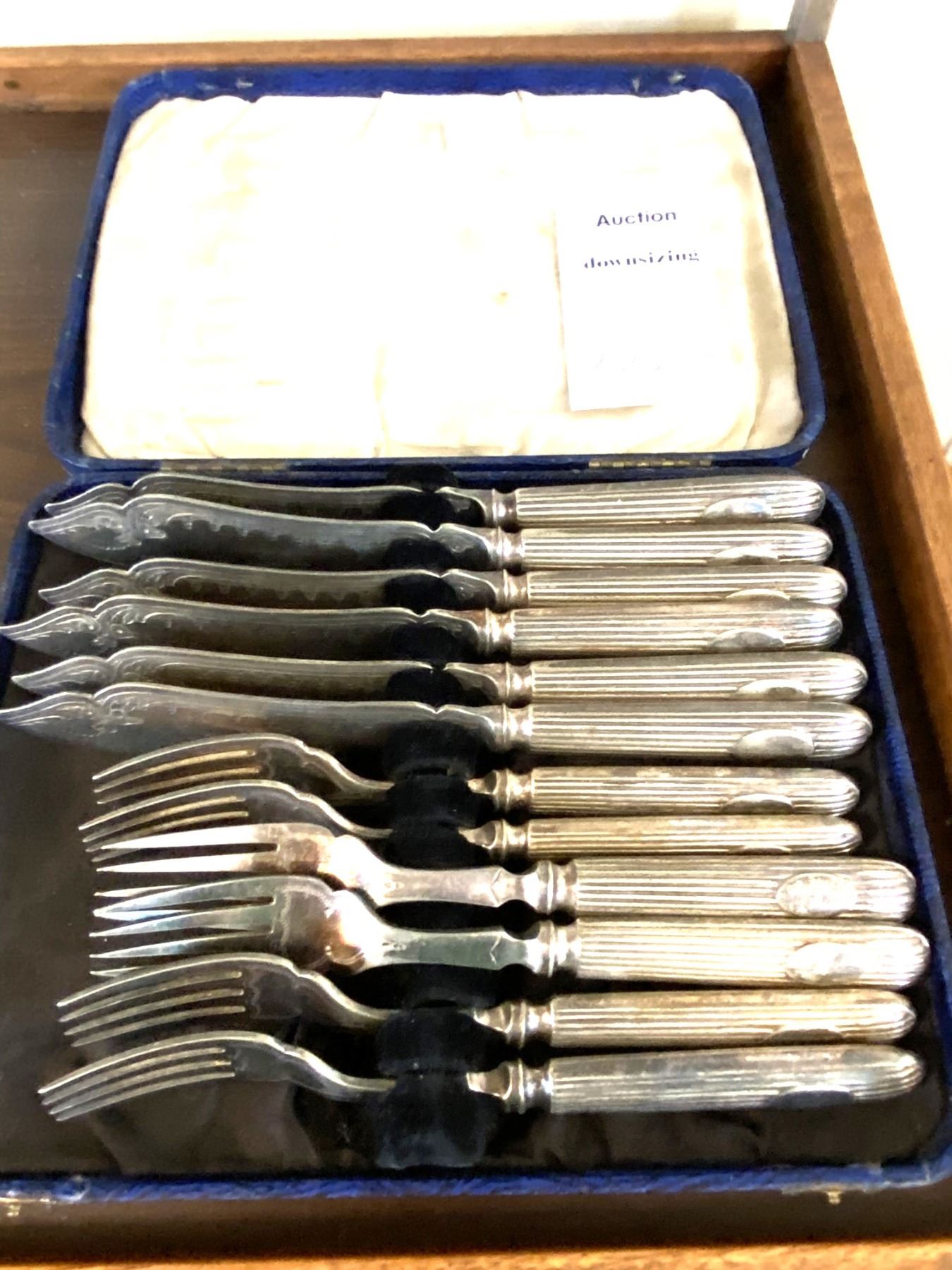 12 pce Set of antique silver plated Fish knives and forks. Pickup at 9 am