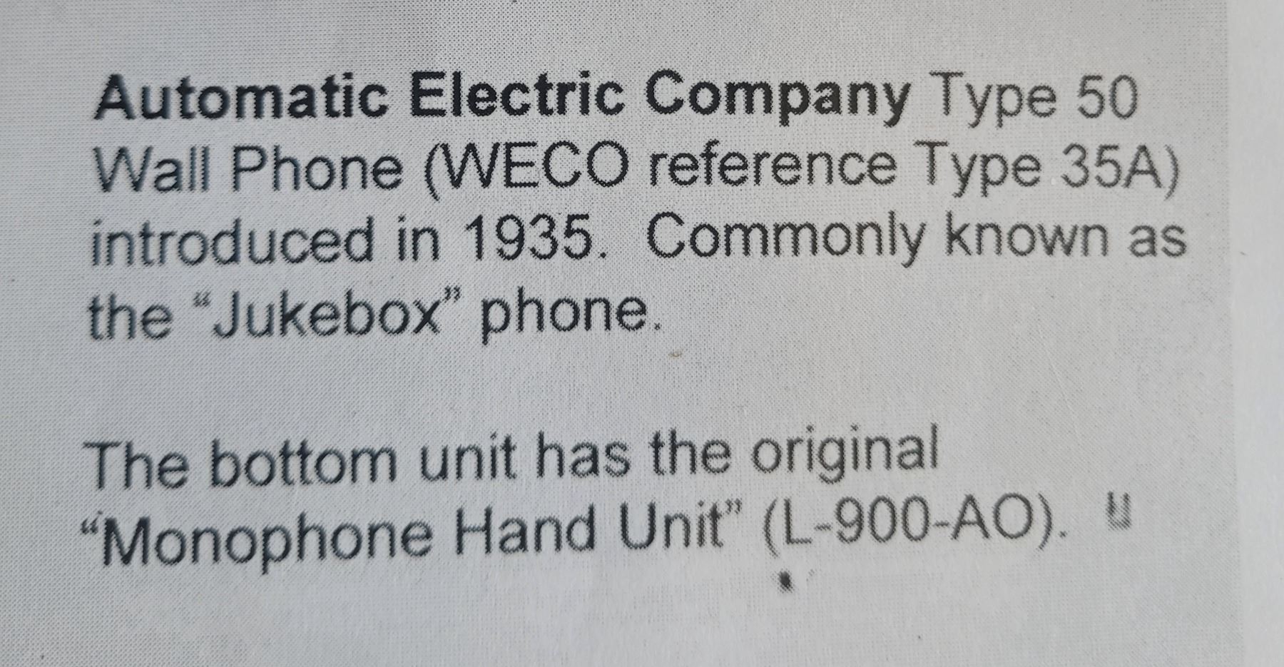 Automatic Electric Company Type 50 Wall Phone. Pickup at 9 am