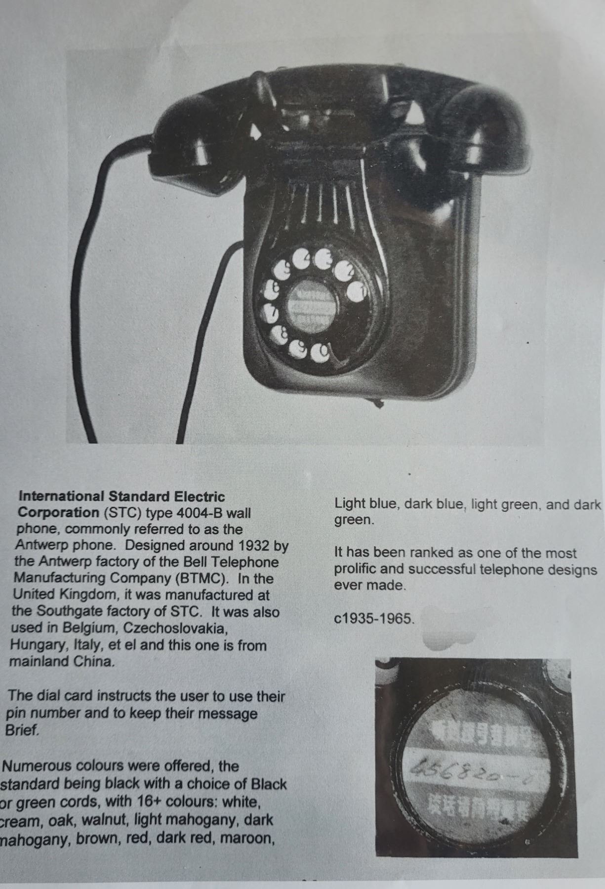 International Standard Electric Co. type 4004-B wall mount. Please note the backing has come away. Pickup at 9 am