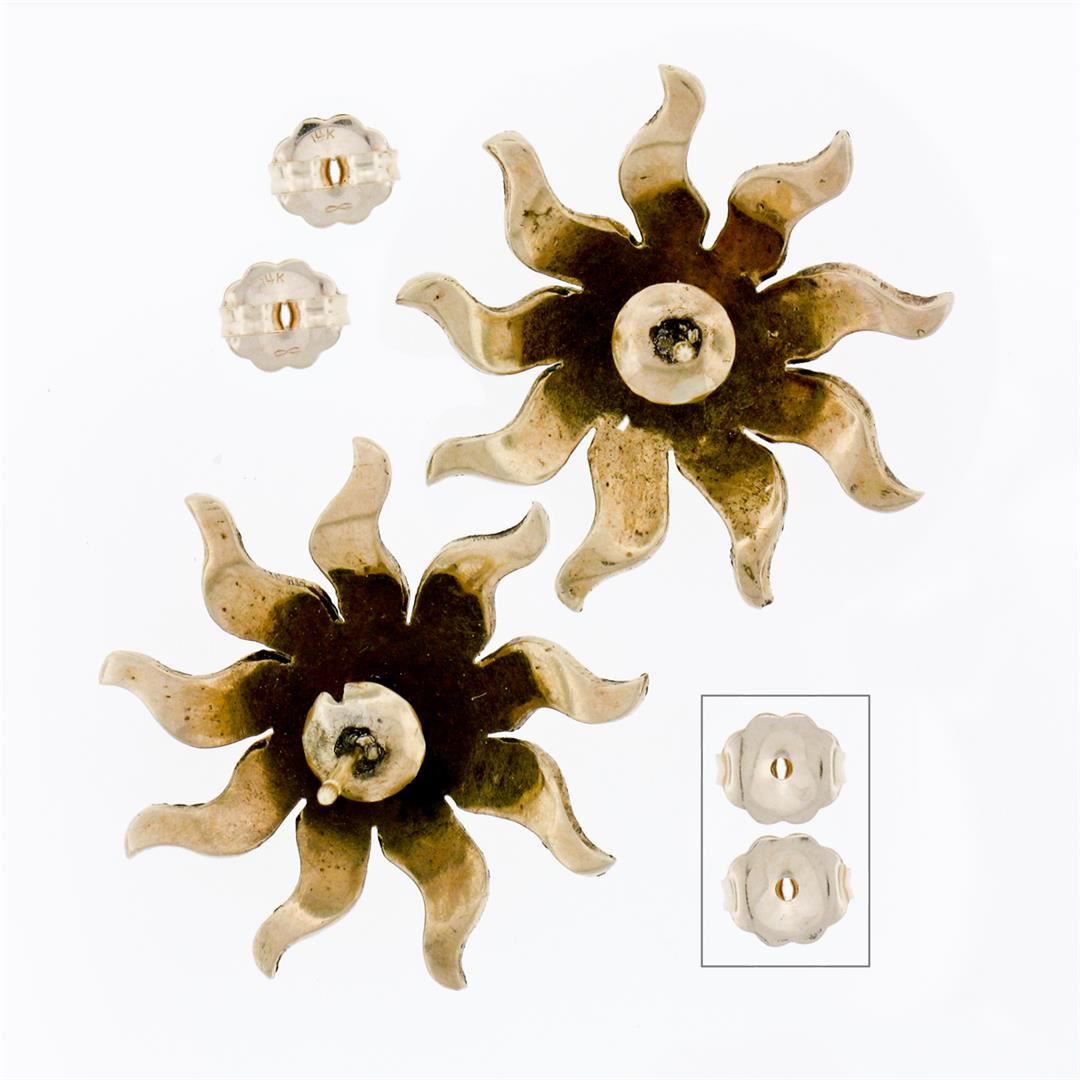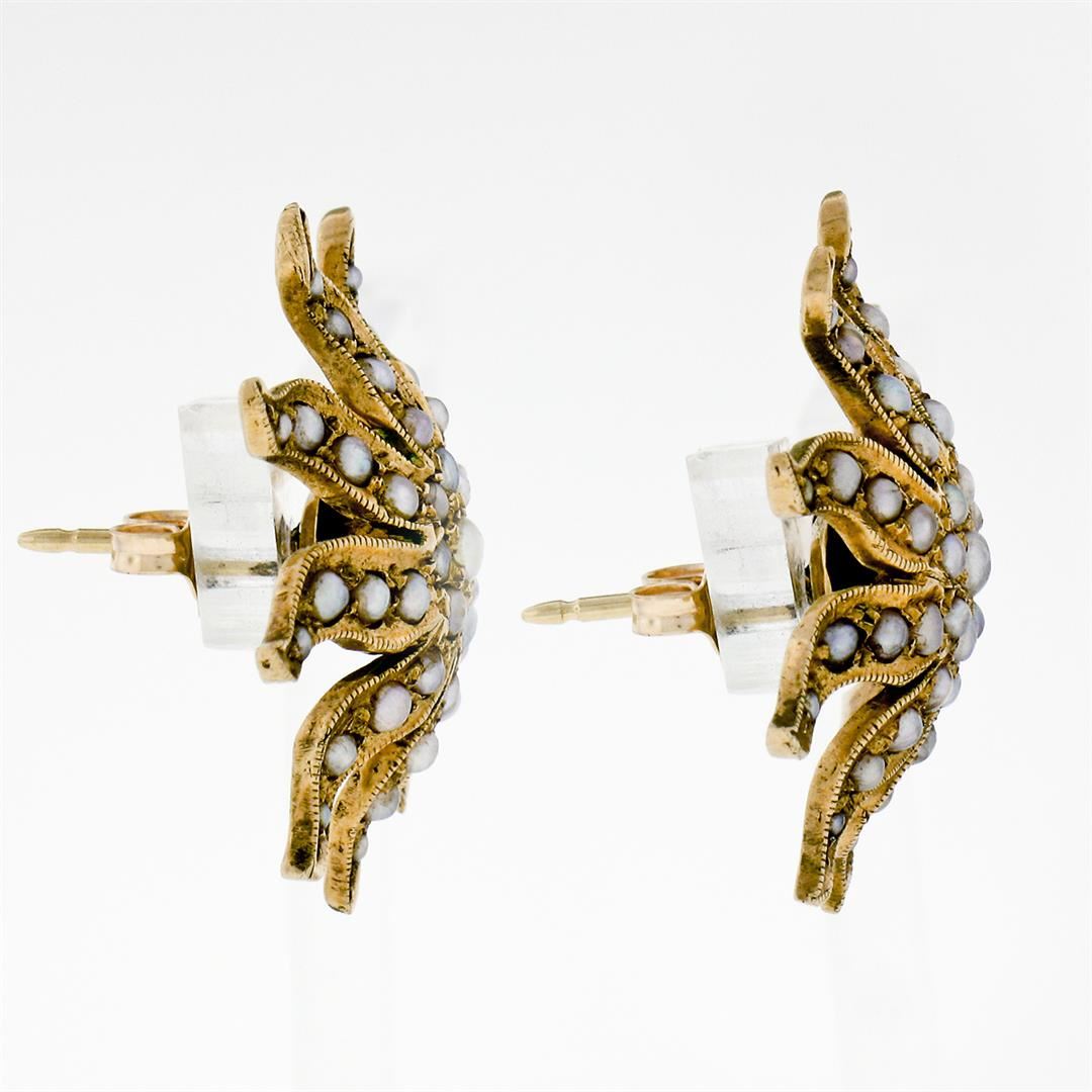 Antique Victorian 14K Yellow Gold Seed Pearl Large Domed Starburst Stud Earrings
