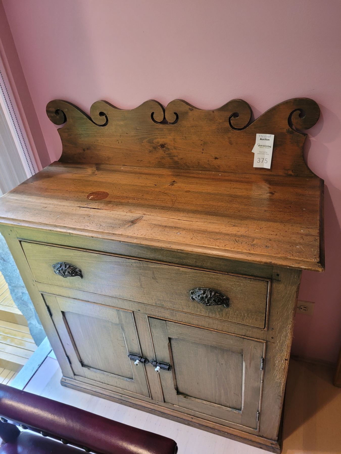 Rustic antique washstand from Montreal 37x16x45 please note cat scratches on legs, bring help to load, pickup 10am