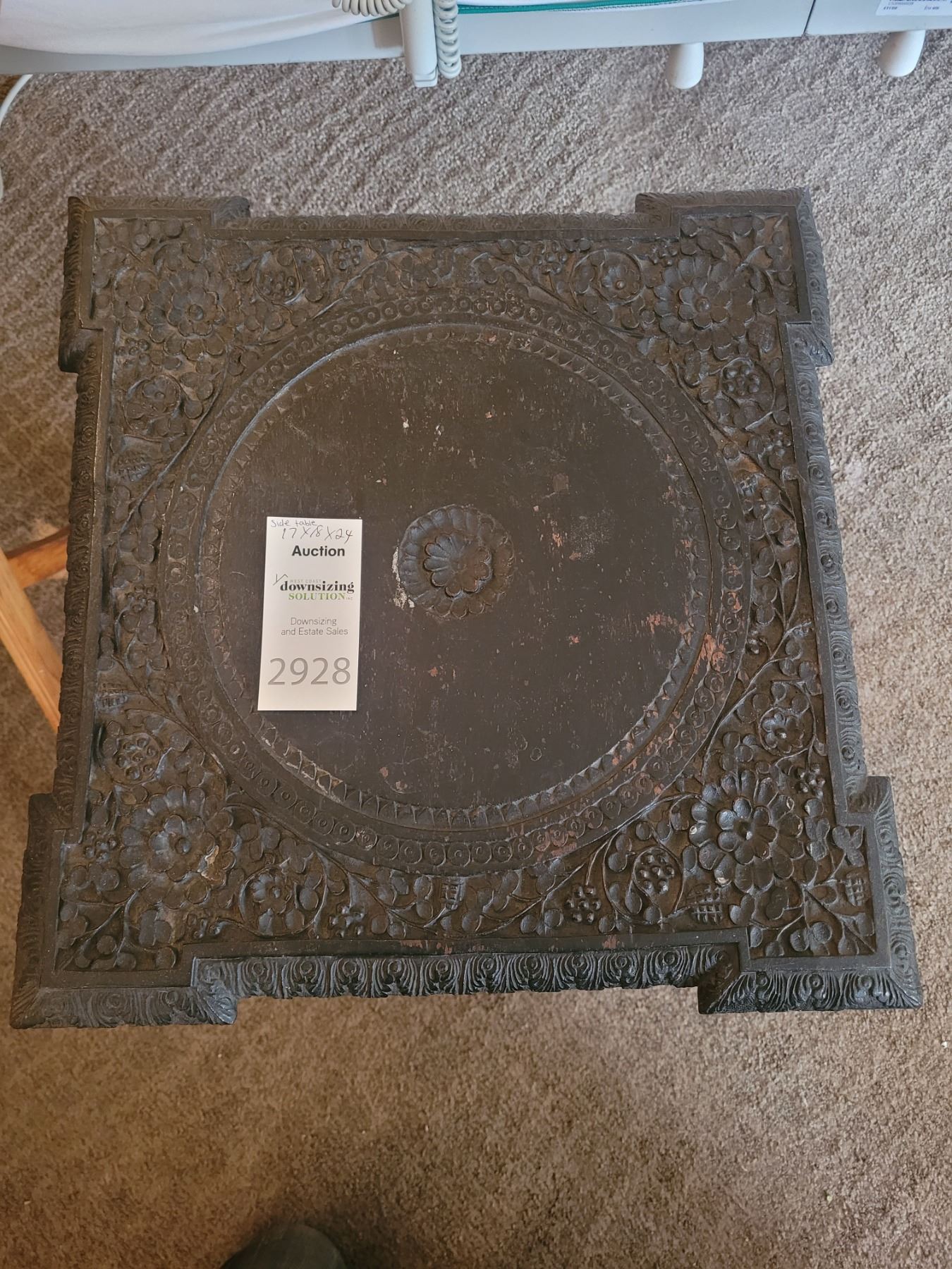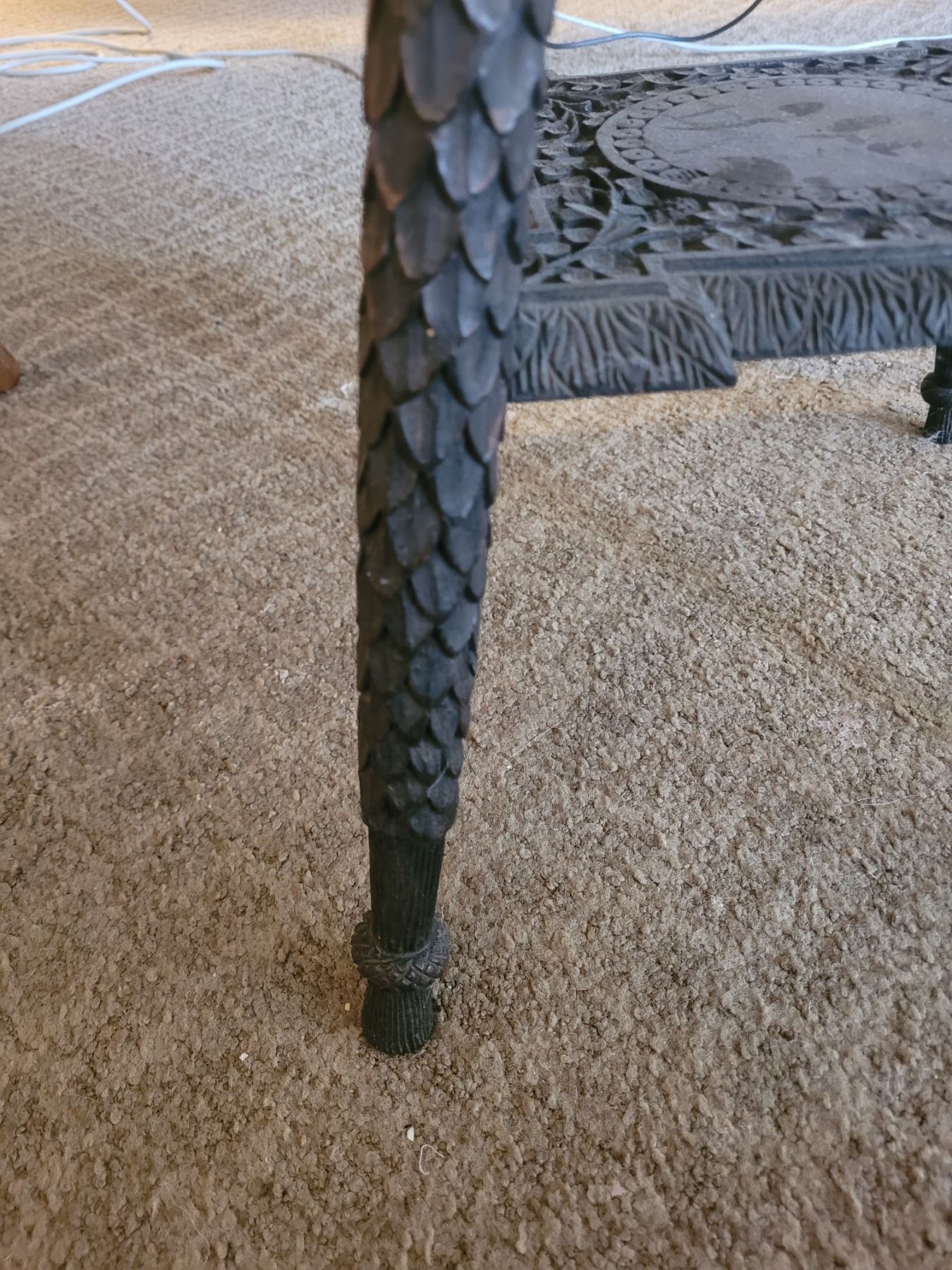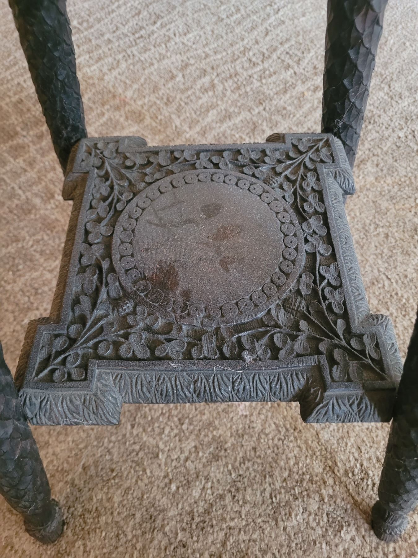 Heavily carved ebony plant stand or occasional table. 17x18x24.:pick up 9am
