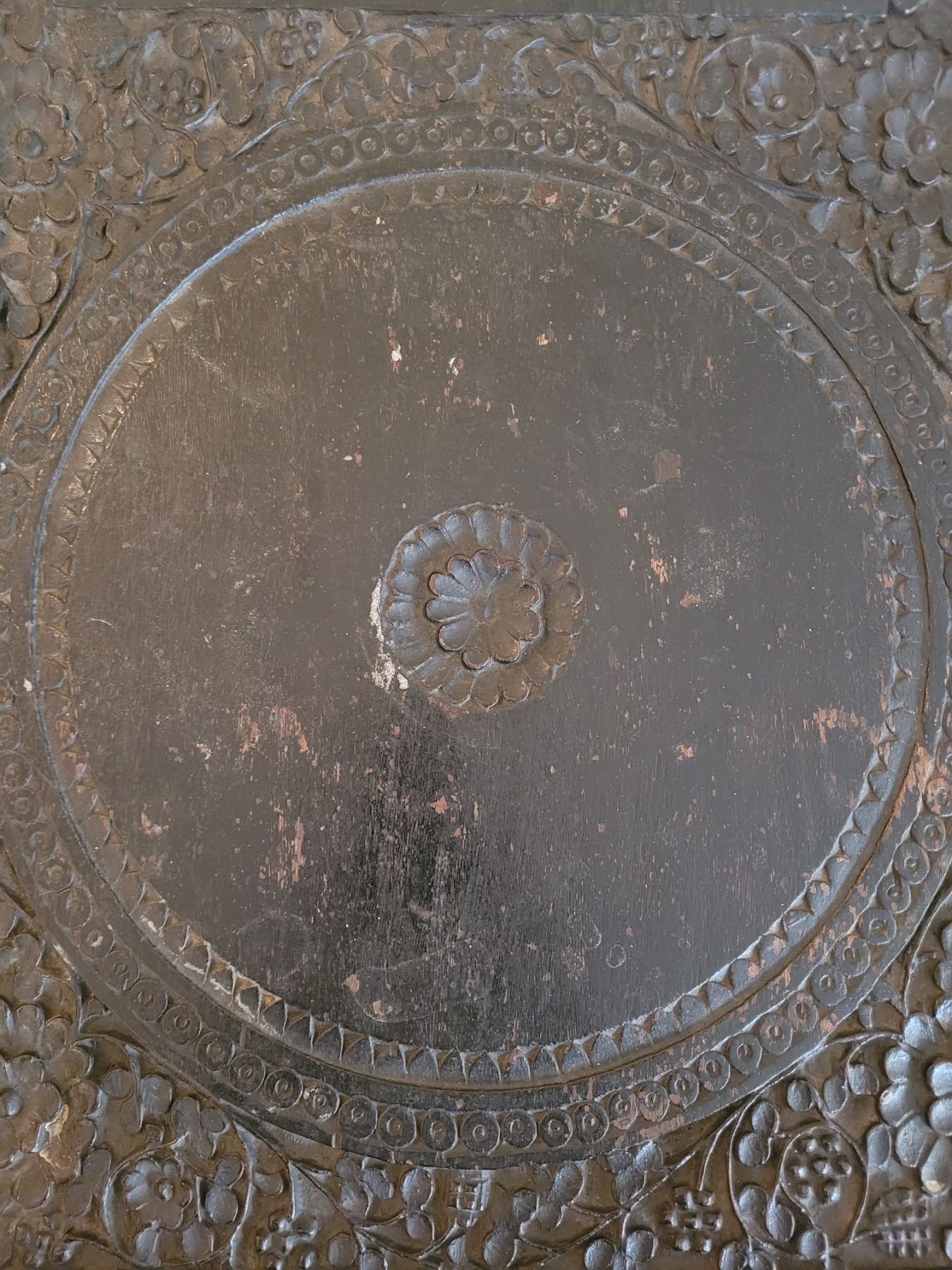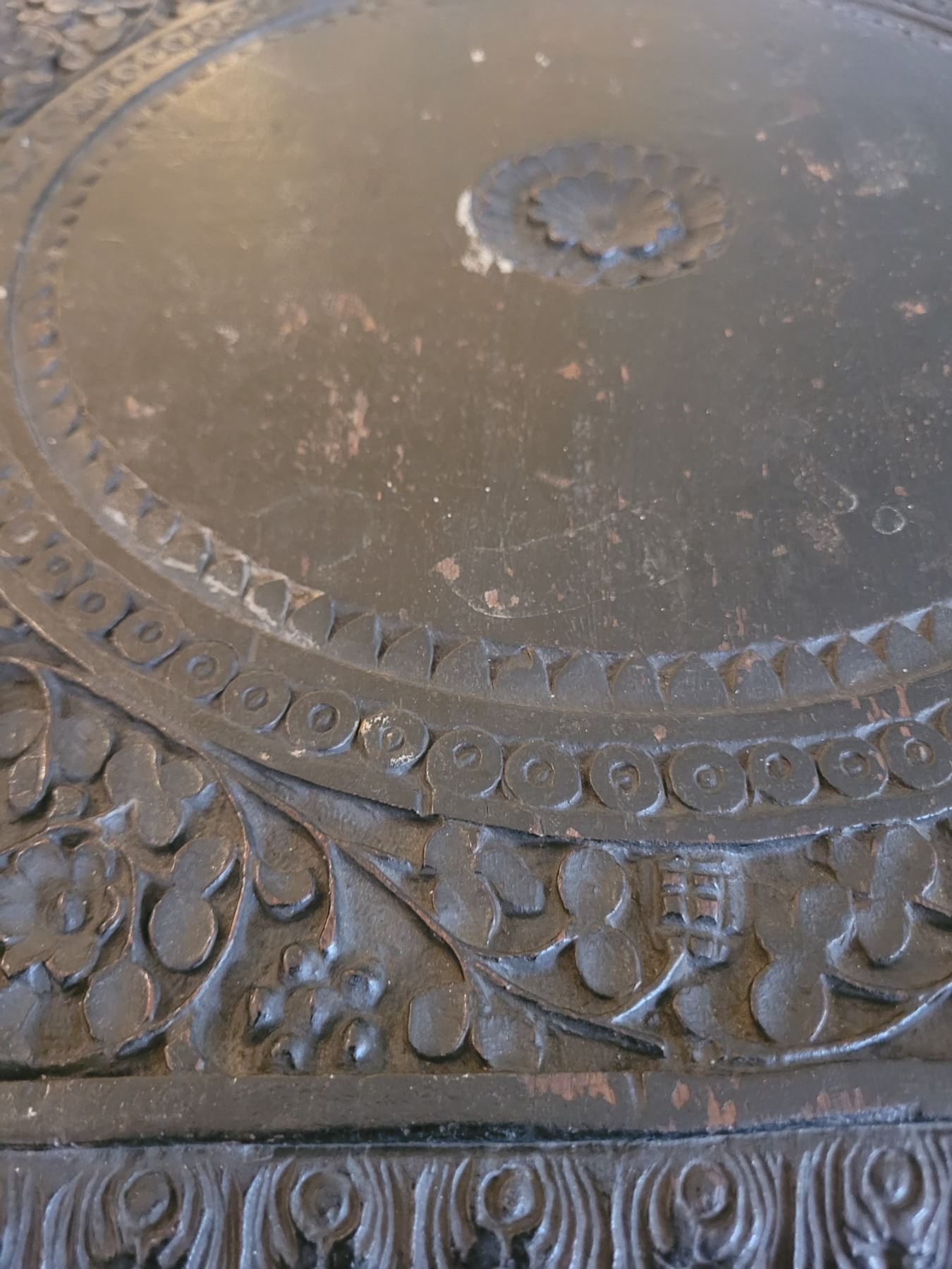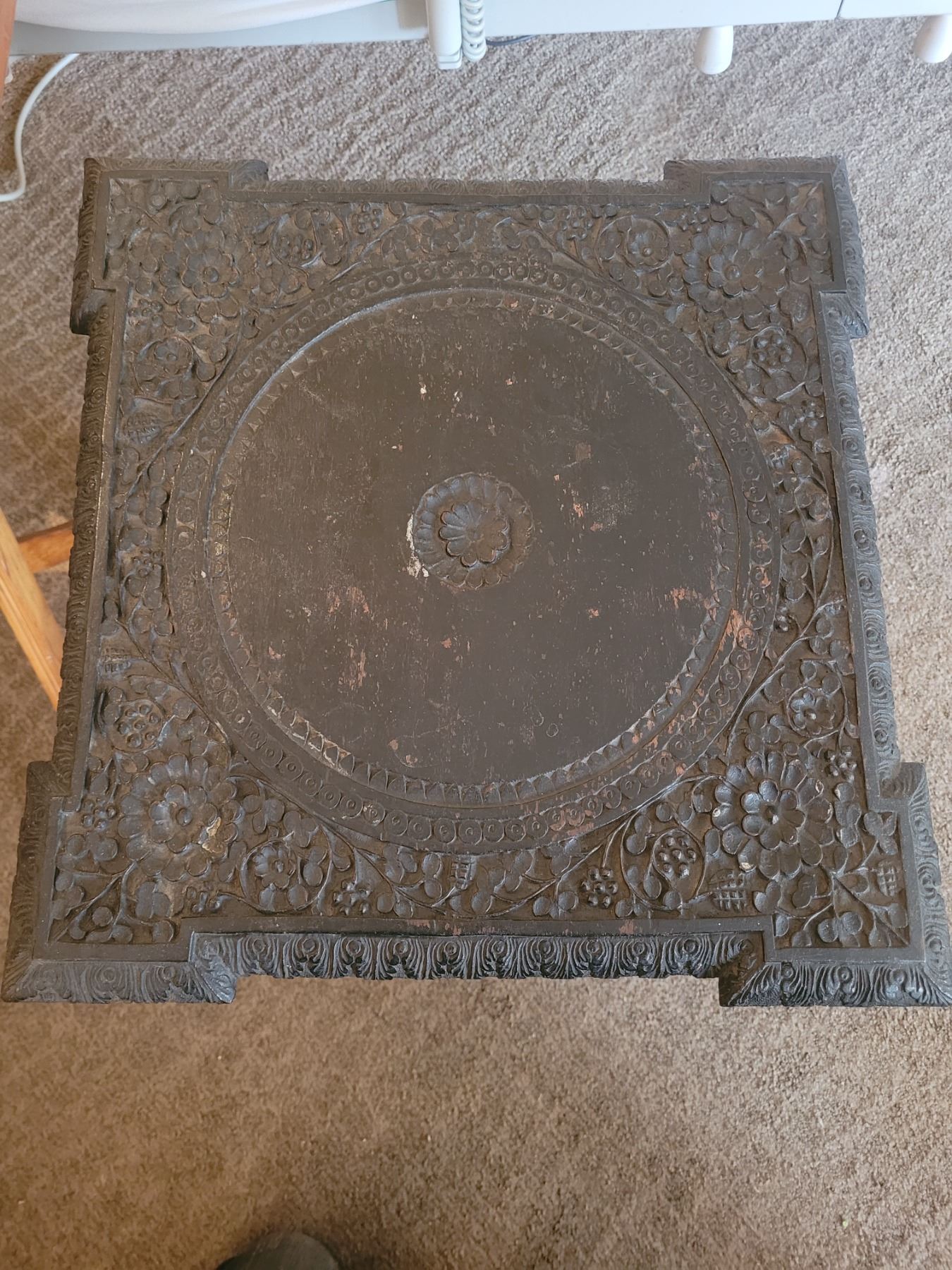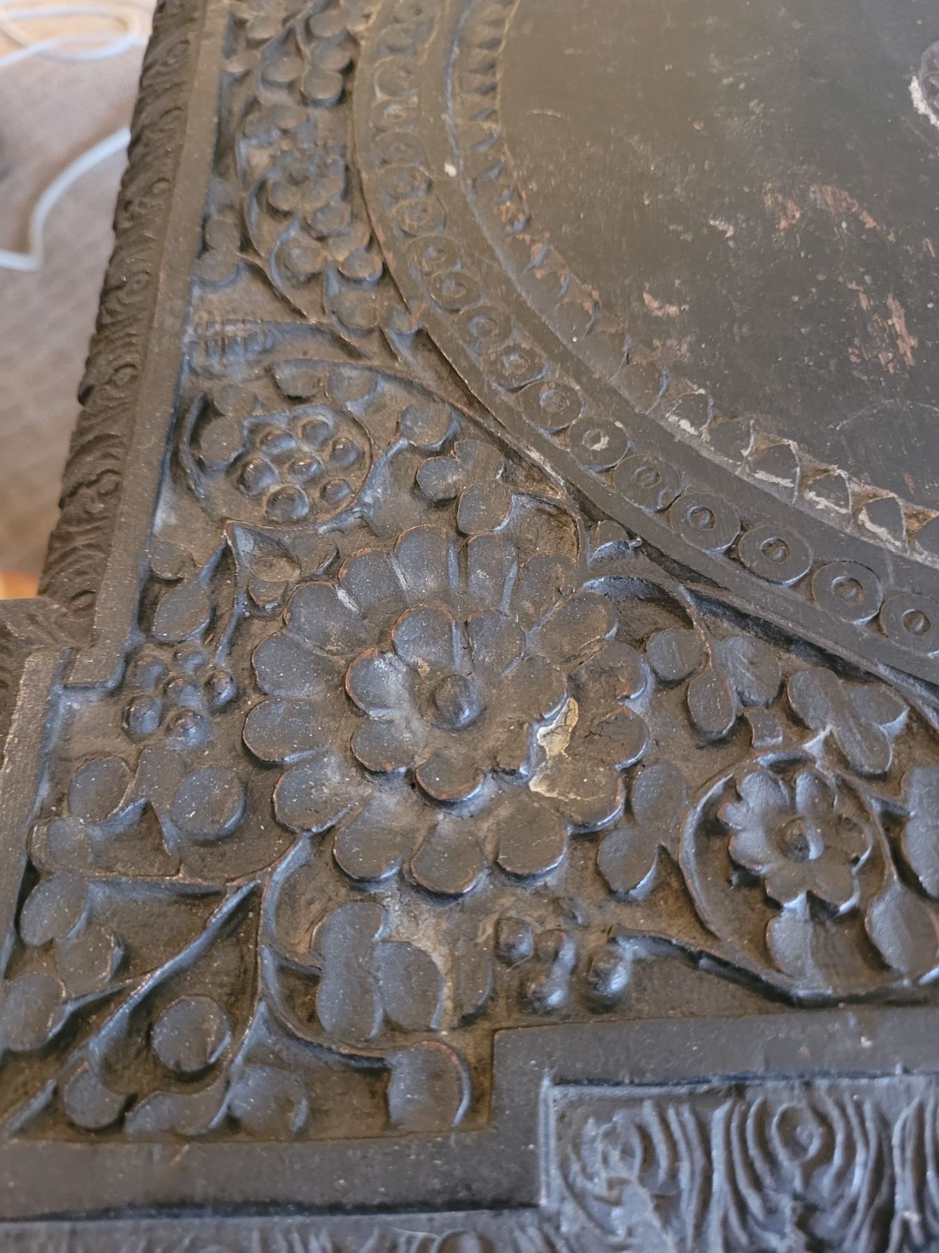 Heavily carved ebony plant stand or occasional table. 17x18x24.:pick up 9am