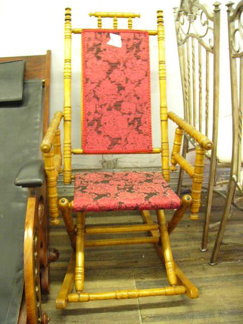 Antique wooden rocking chair with fabric seat and backrest (24)
